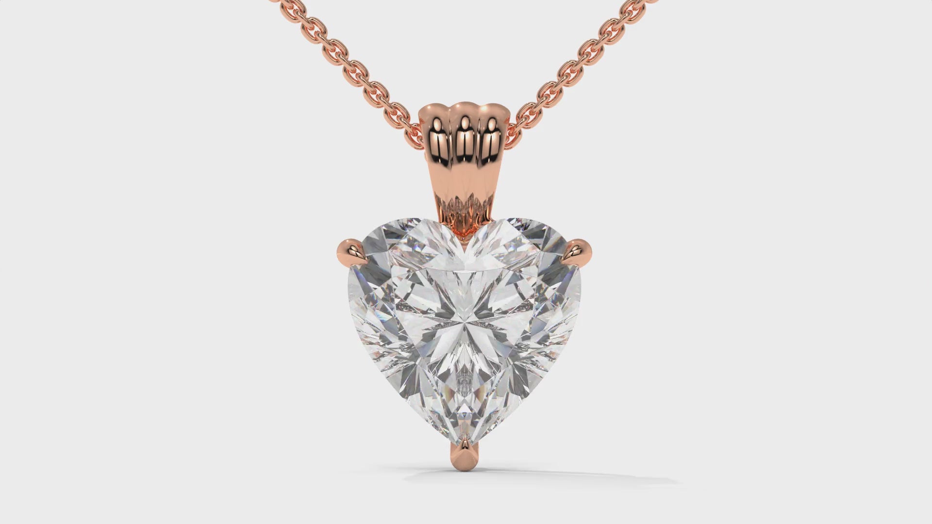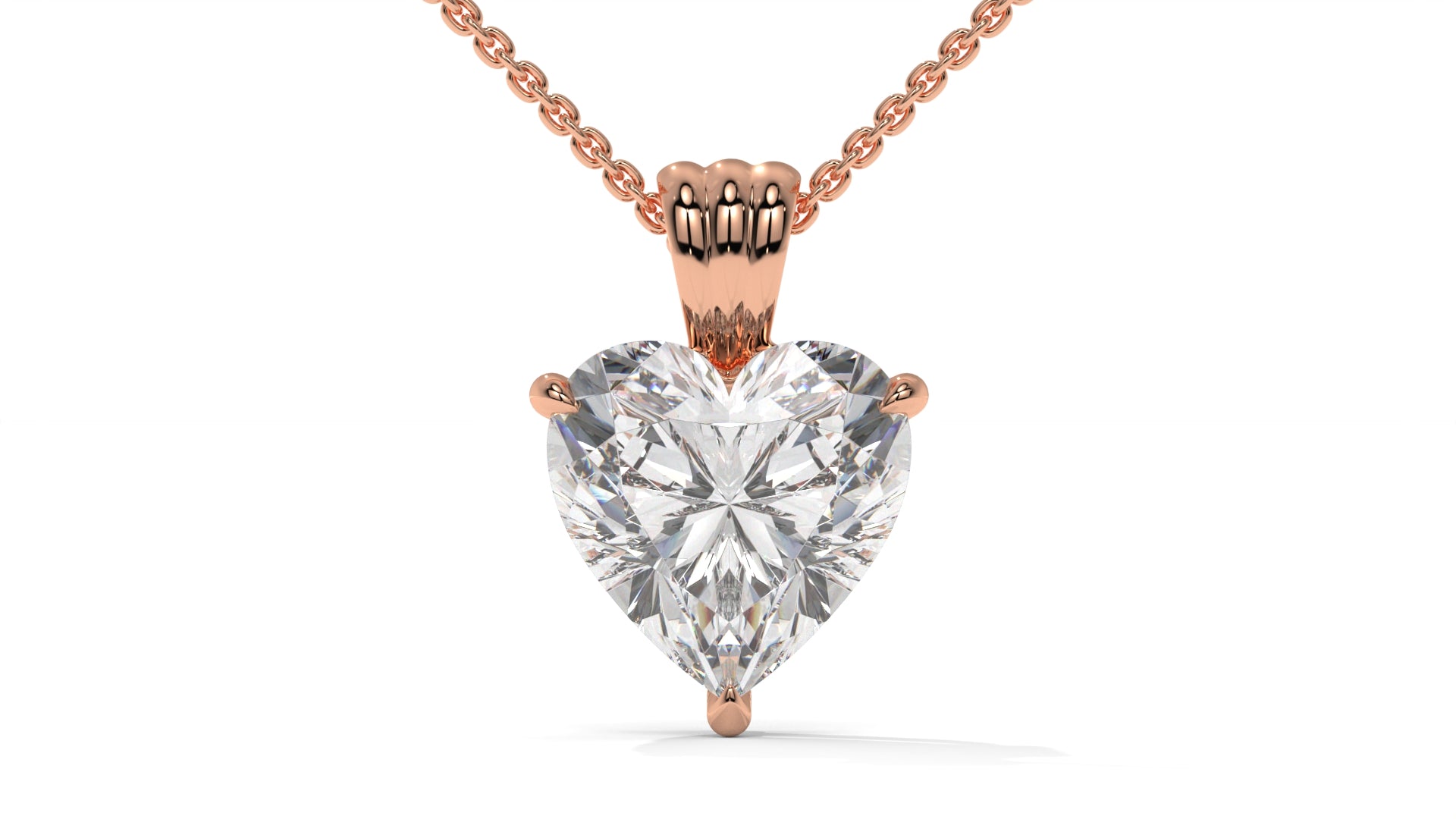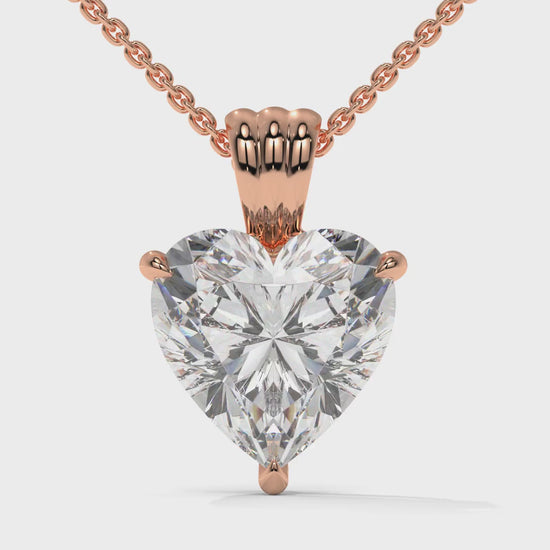 A luxurious 3.00 carat total weight heart-shaped diamond pendant designed for those who love to stand out. Set in 14K rose gold, the secure claw-prong setting enhances the brilliance of the diamond while ensuring lasting security. A bold and elegant piece for life’s most cherished moments.
