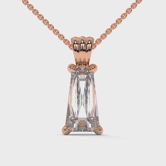 3.00 CTW Tapered Baguette Diamond Solitaire Pendant in 14K Rose Gold – Secure Claw-Prong Setting
