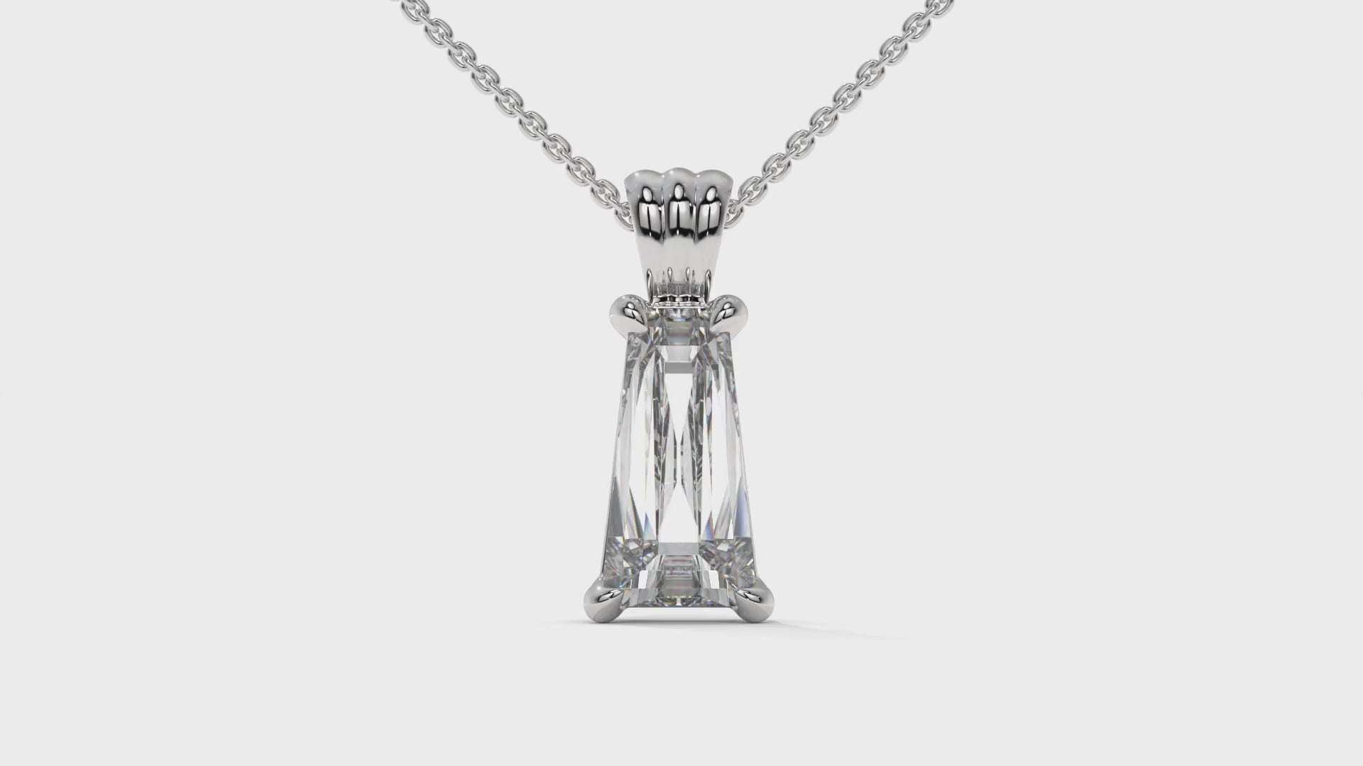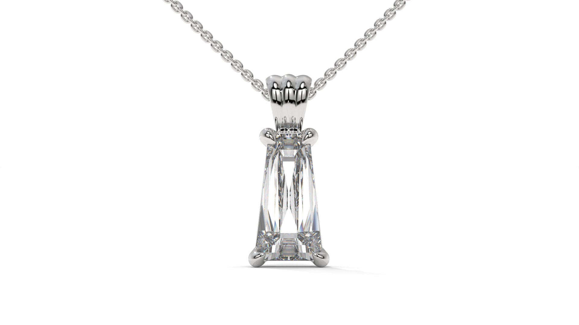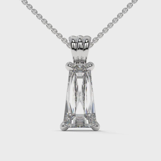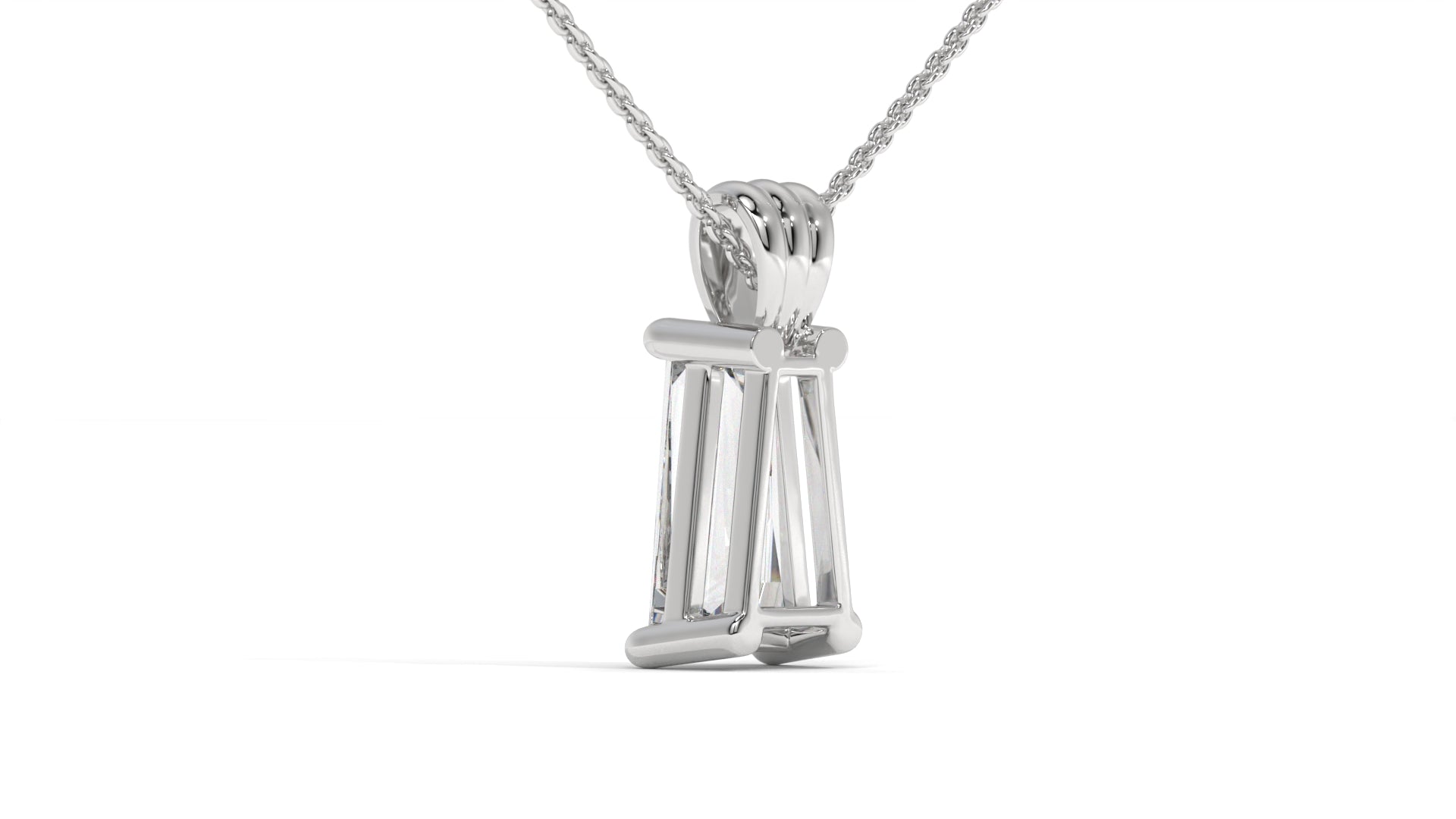 3.00 CTW Tapered Baguette Diamond Solitaire Pendant in 14K White Gold – Secure Claw-Prong Setting