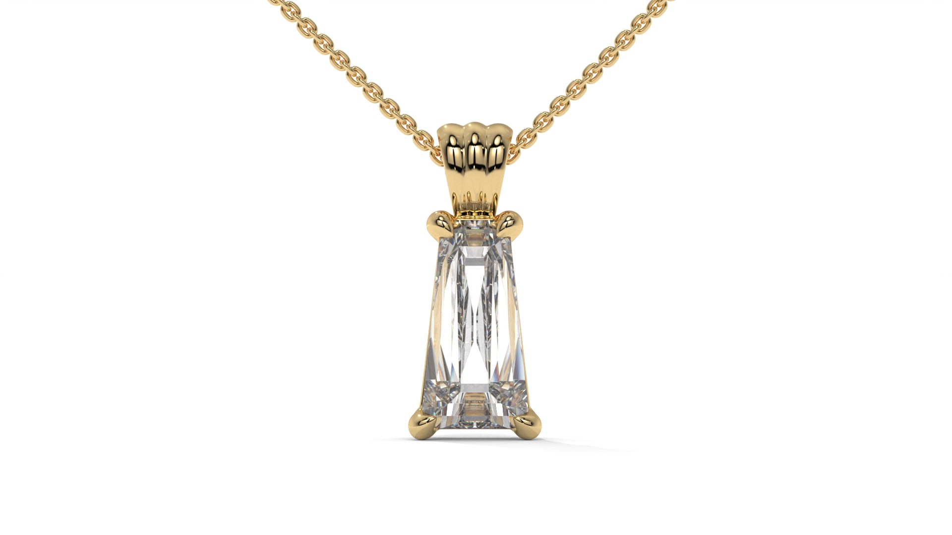 3.00 CTW Tapered Baguette Diamond Solitaire Pendant in 14K Yellow Gold – Secure Claw-Prong Setting