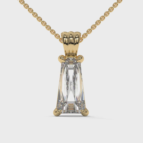 Elevate your style with this 3.00 carat total weight tapered baguette diamond pendant, set in luxurious 14K yellow gold. The elongated cut showcases dazzling brilliance, while the secure claw-prong setting ensures exceptional durability and security.