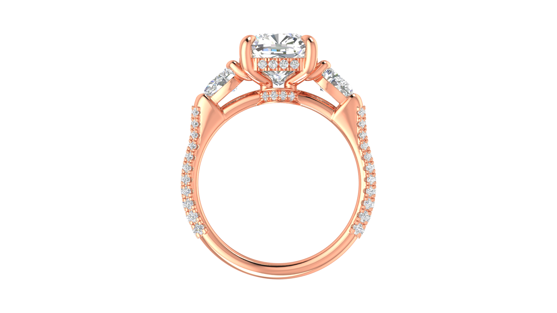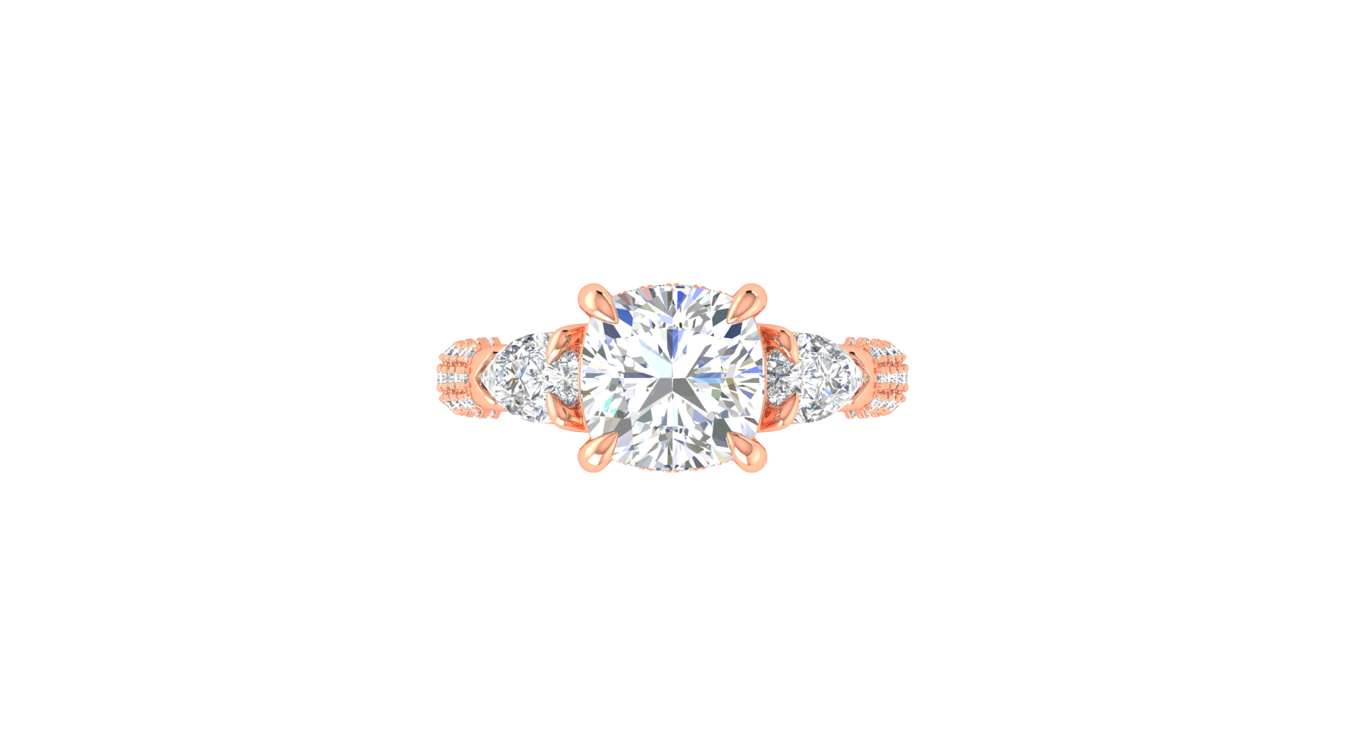 3 Carat Cushion-Cut Engagement Ring With Pear-Shaped Side Stones In 14K Rose Gold