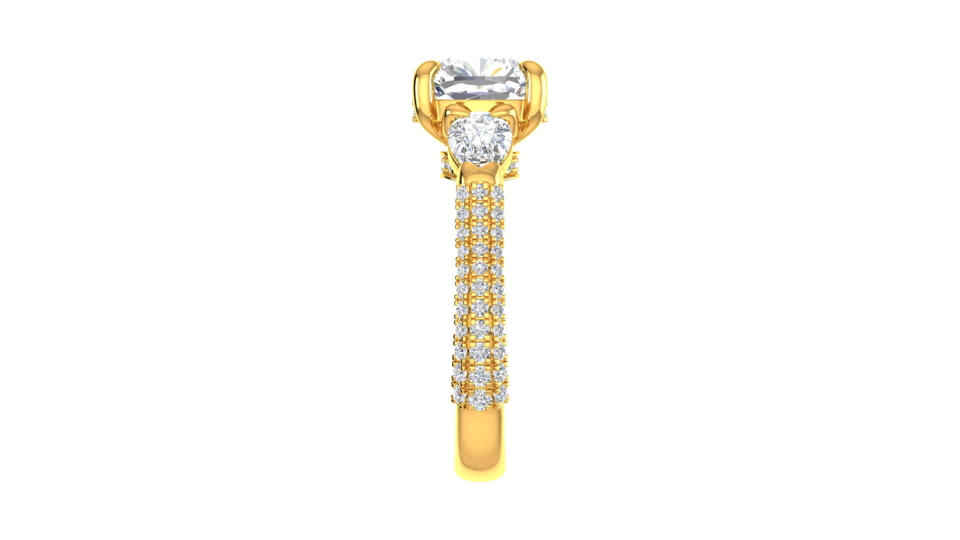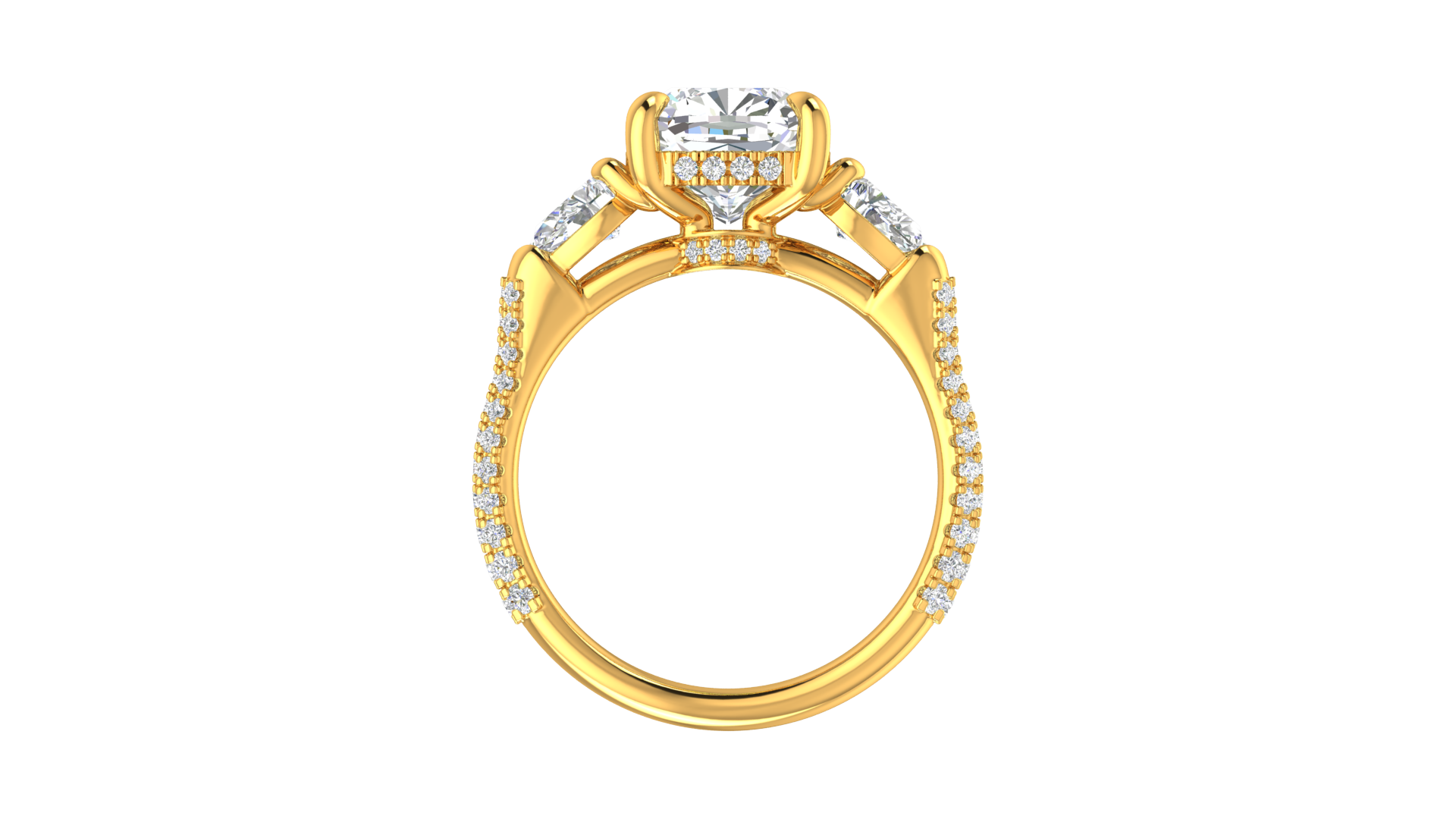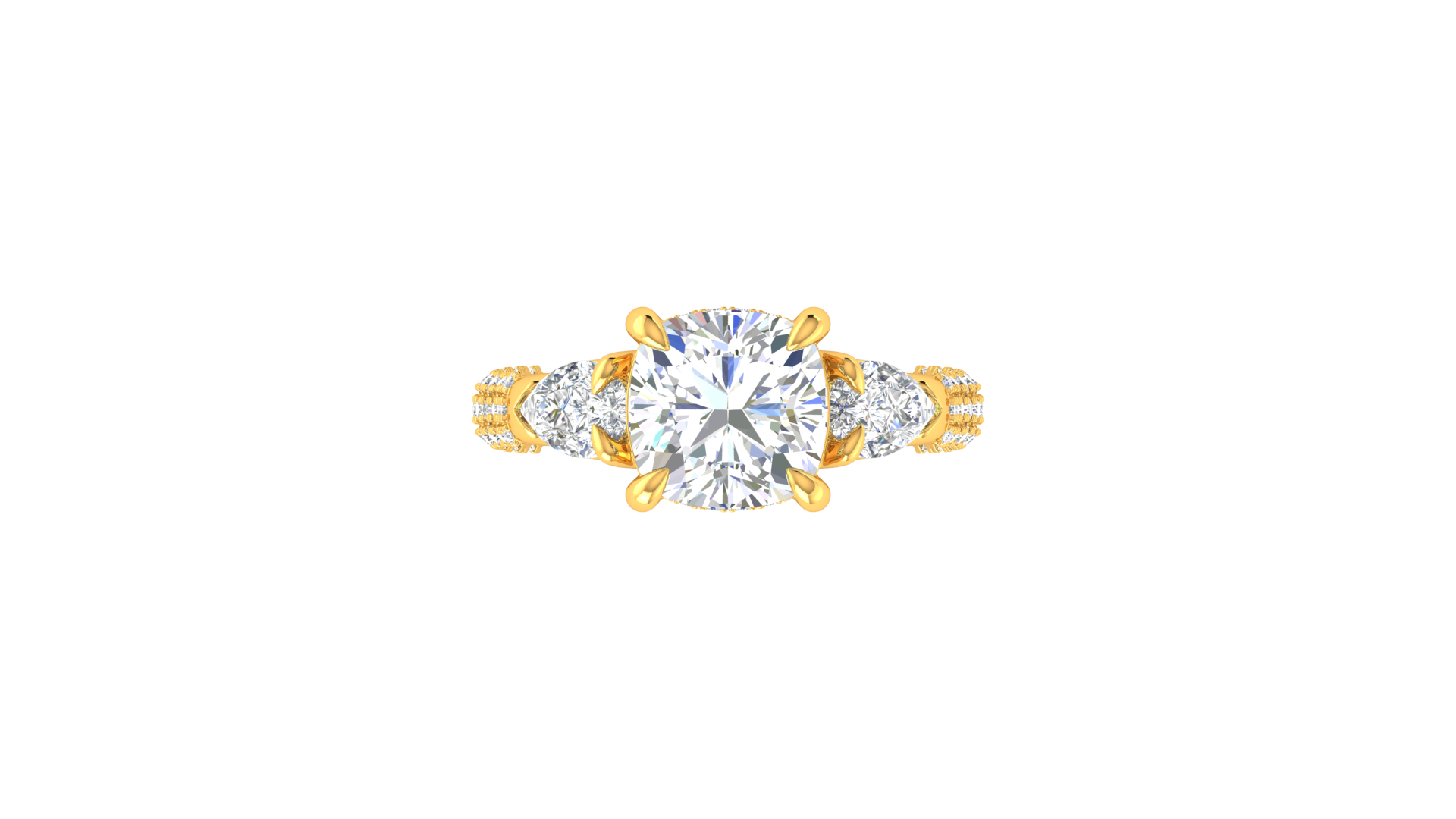 3 Carat Cushion-Cut Engagement Ring With Pear-Shaped Side Stones In 14K Yellow Gold