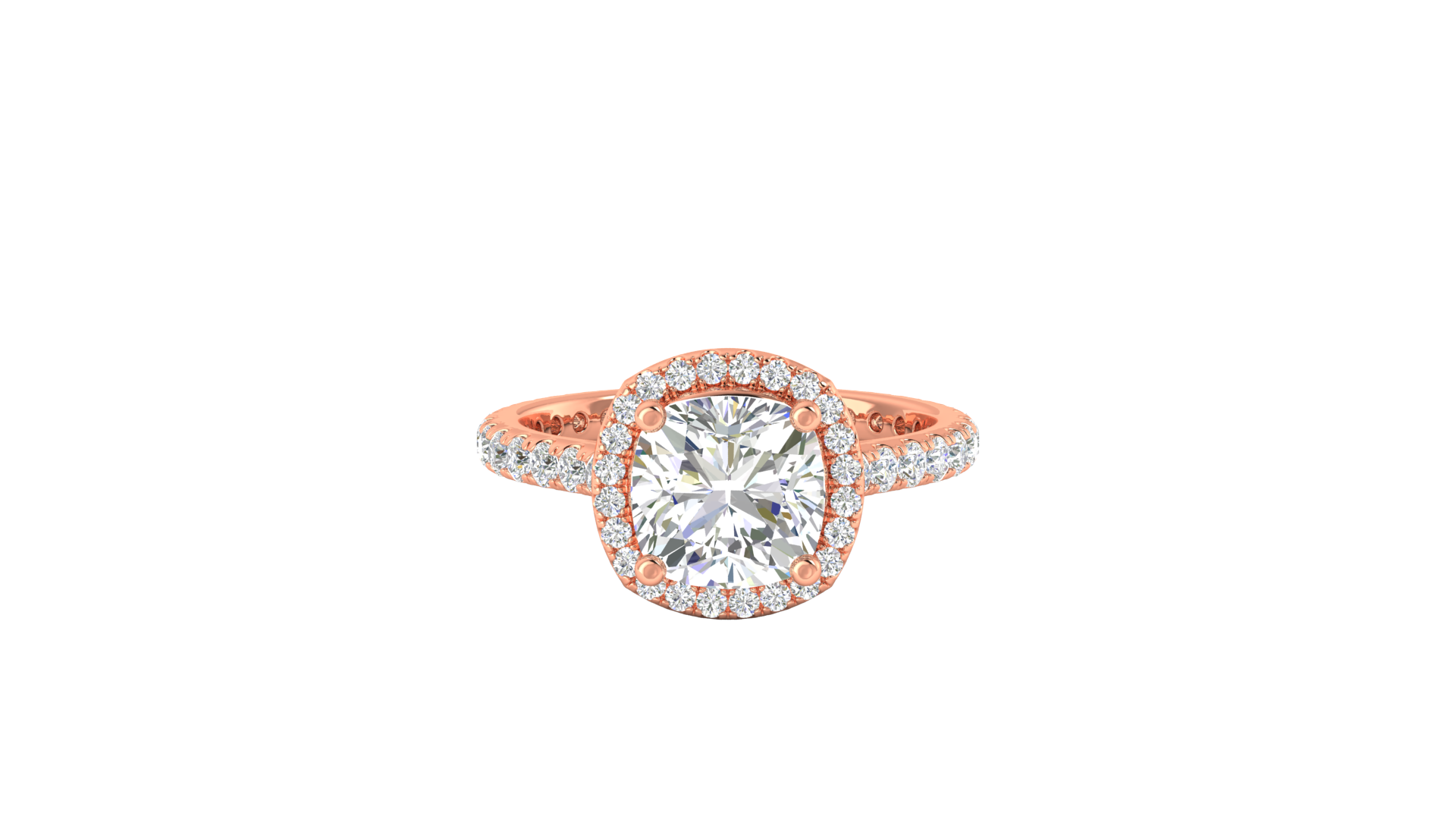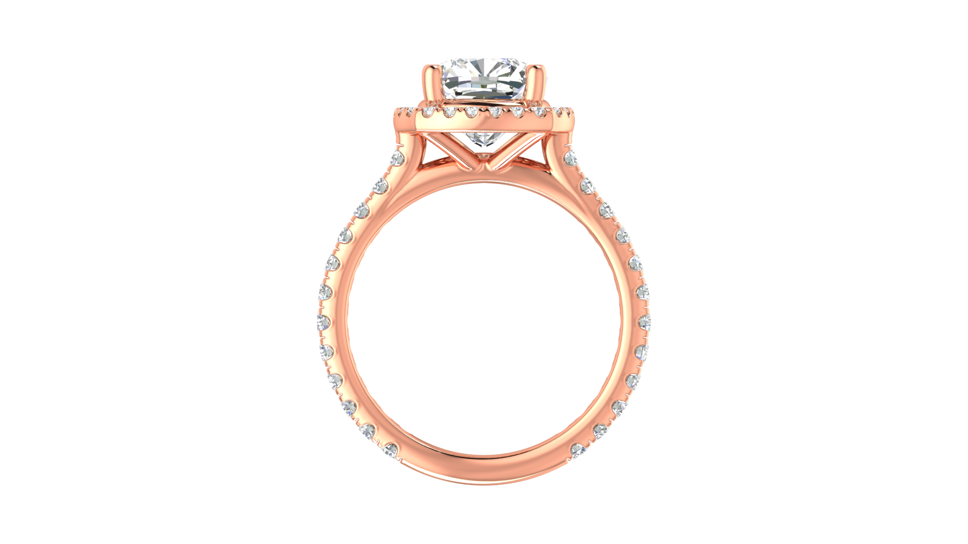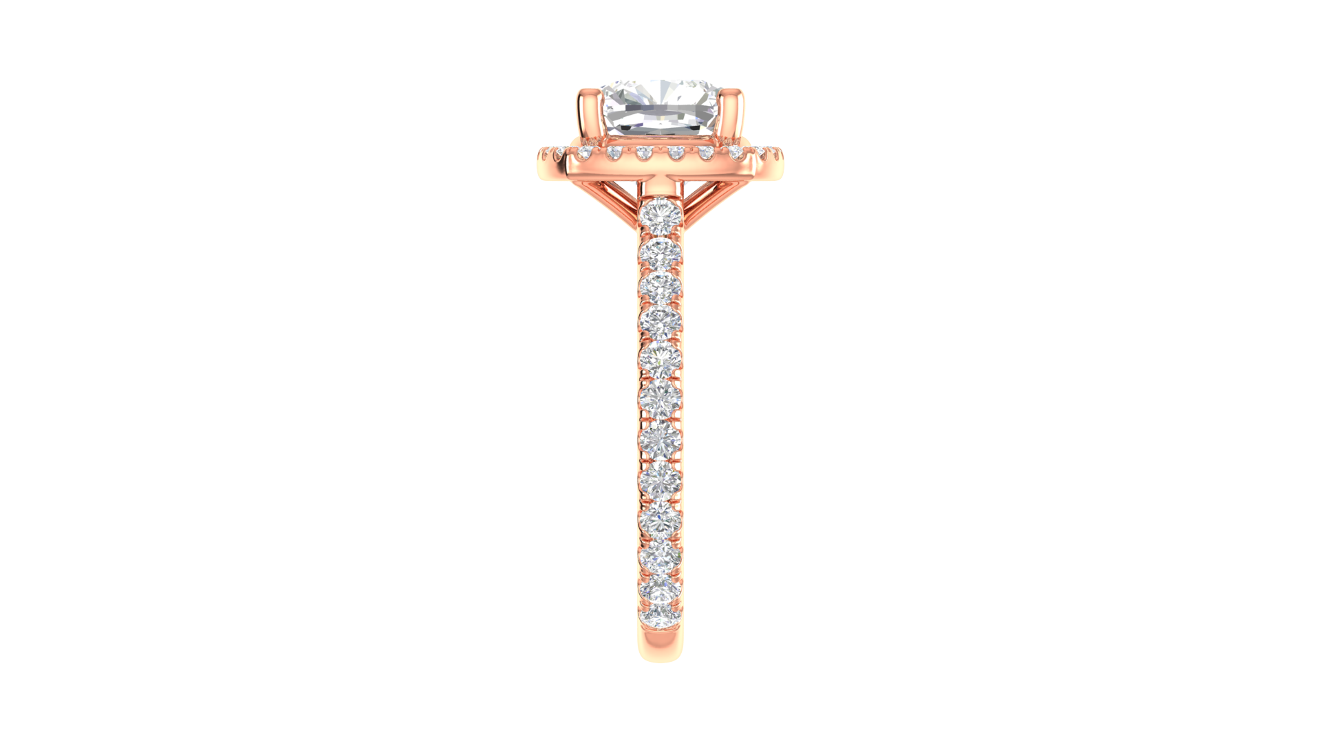 3 Carat Cushion-Cut Halo Engagement Ring With Pavé Diamond Band In 14K Rose Gold