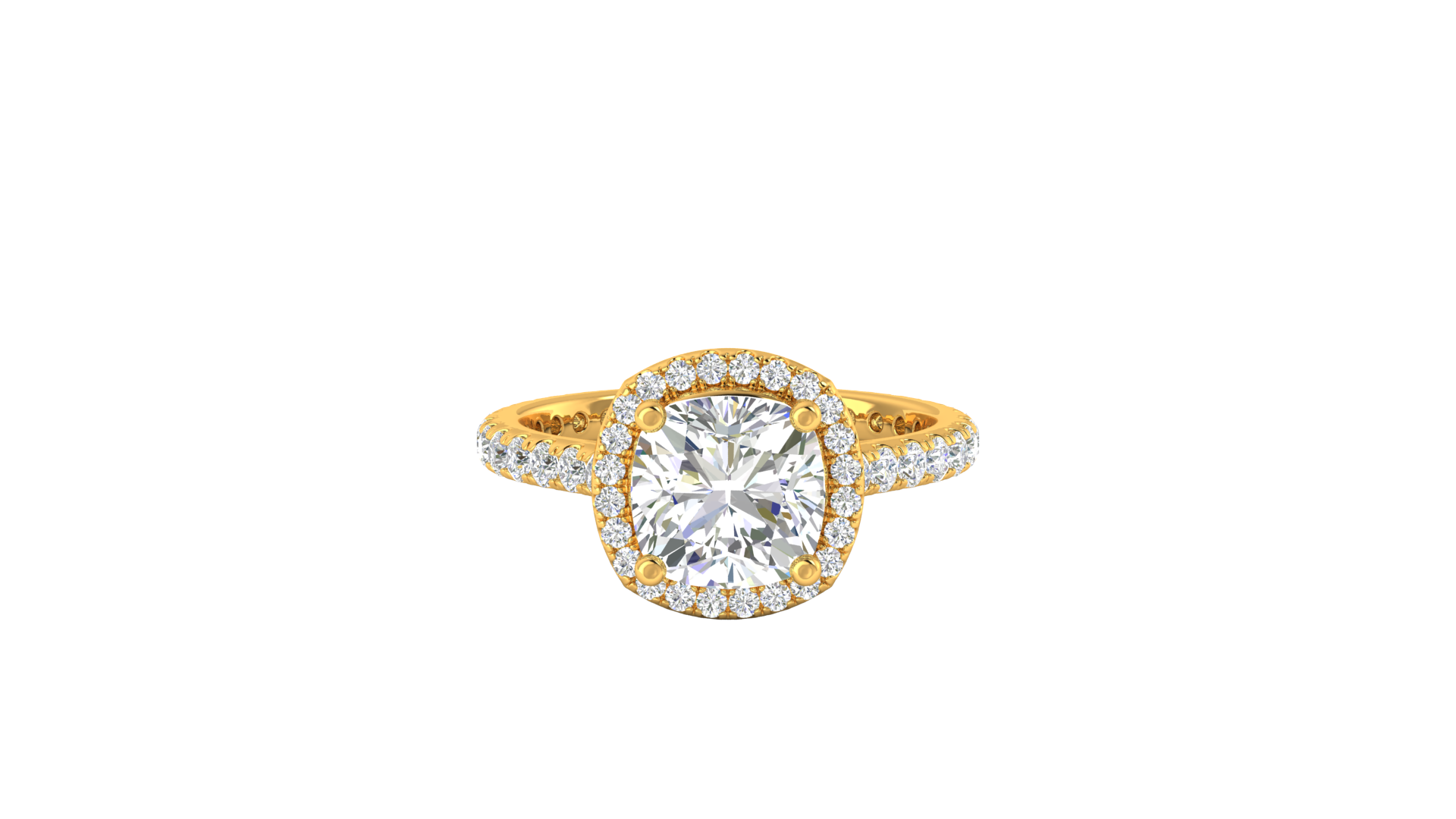 Experience unmatched brilliance with our 3-carat cushion-cut halo engagement ring. Featuring a stunning center diamond encircled by a sparkling halo and a pavé-set diamond band, this timeless design exudes elegance and sophistication. Perfect for your forever moment, this ring is meticulously crafted for exceptional quality.