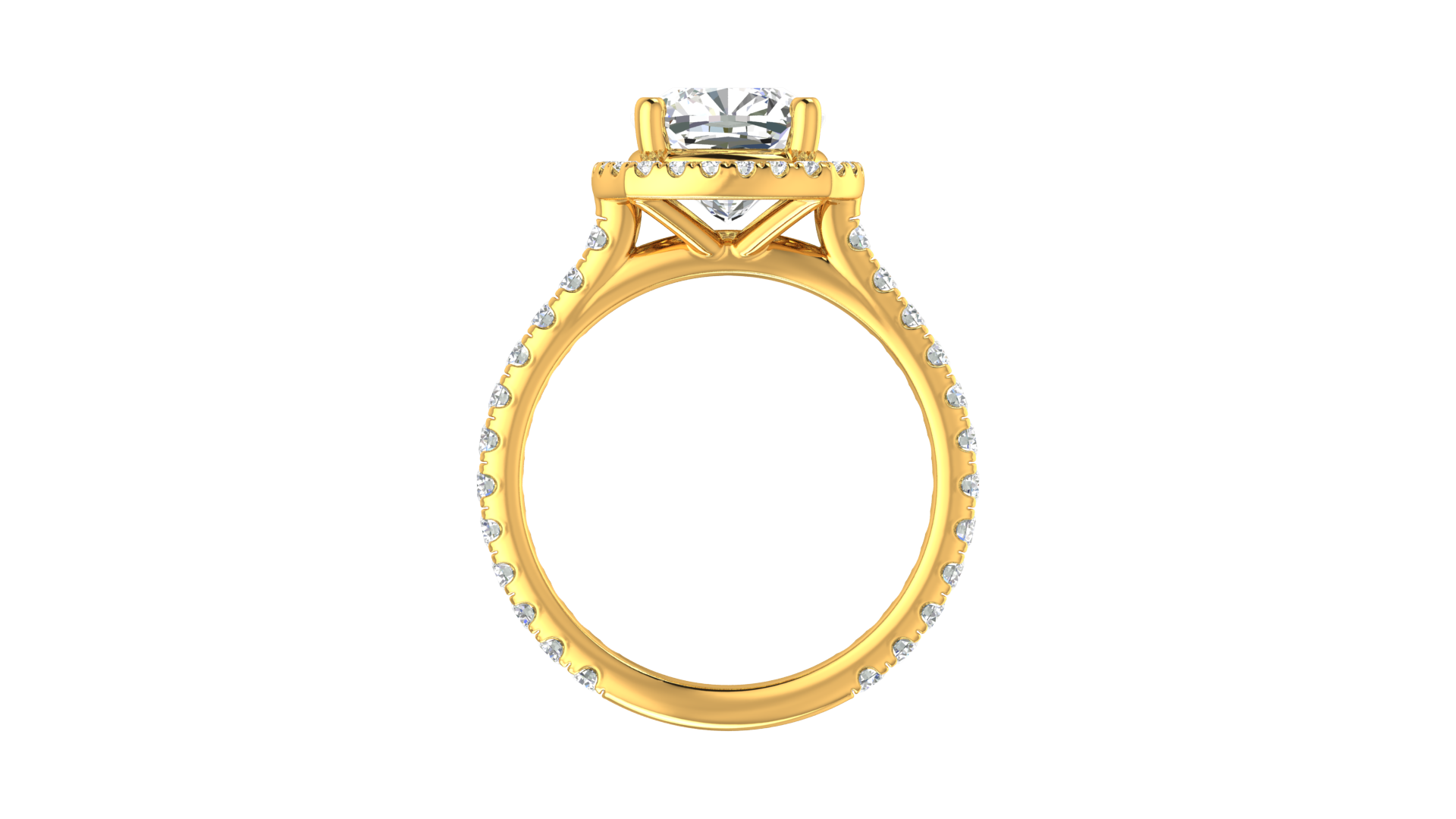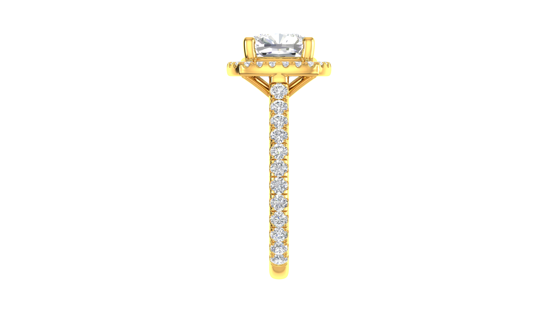 3 Carat Cushion-Cut Halo Engagement Ring With Pavé Diamond Band In 14K Yellow Gold