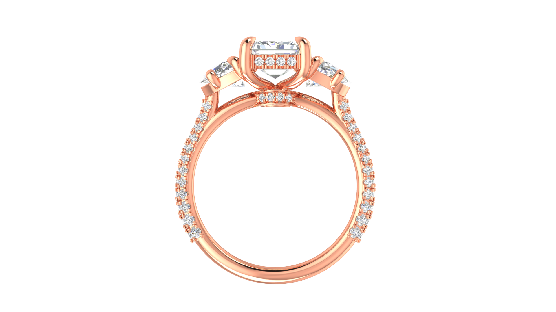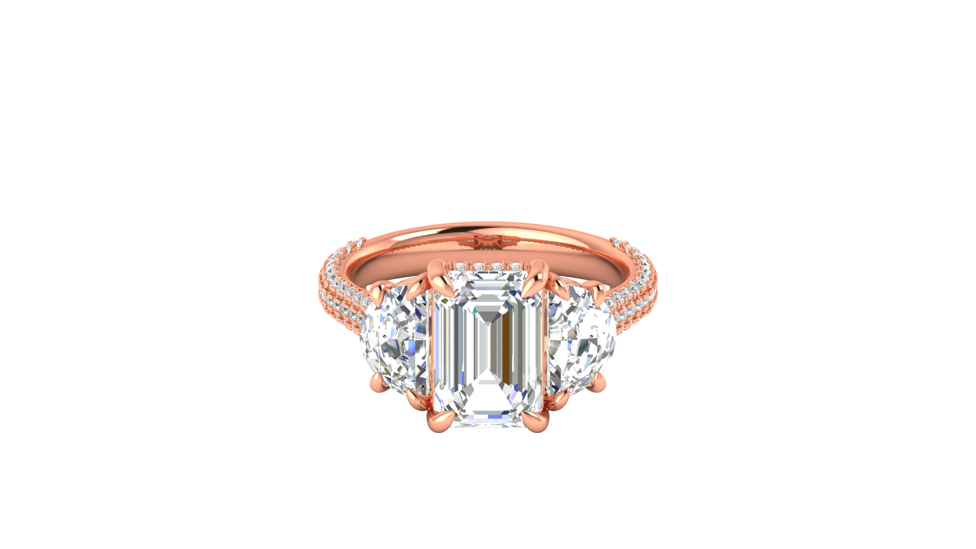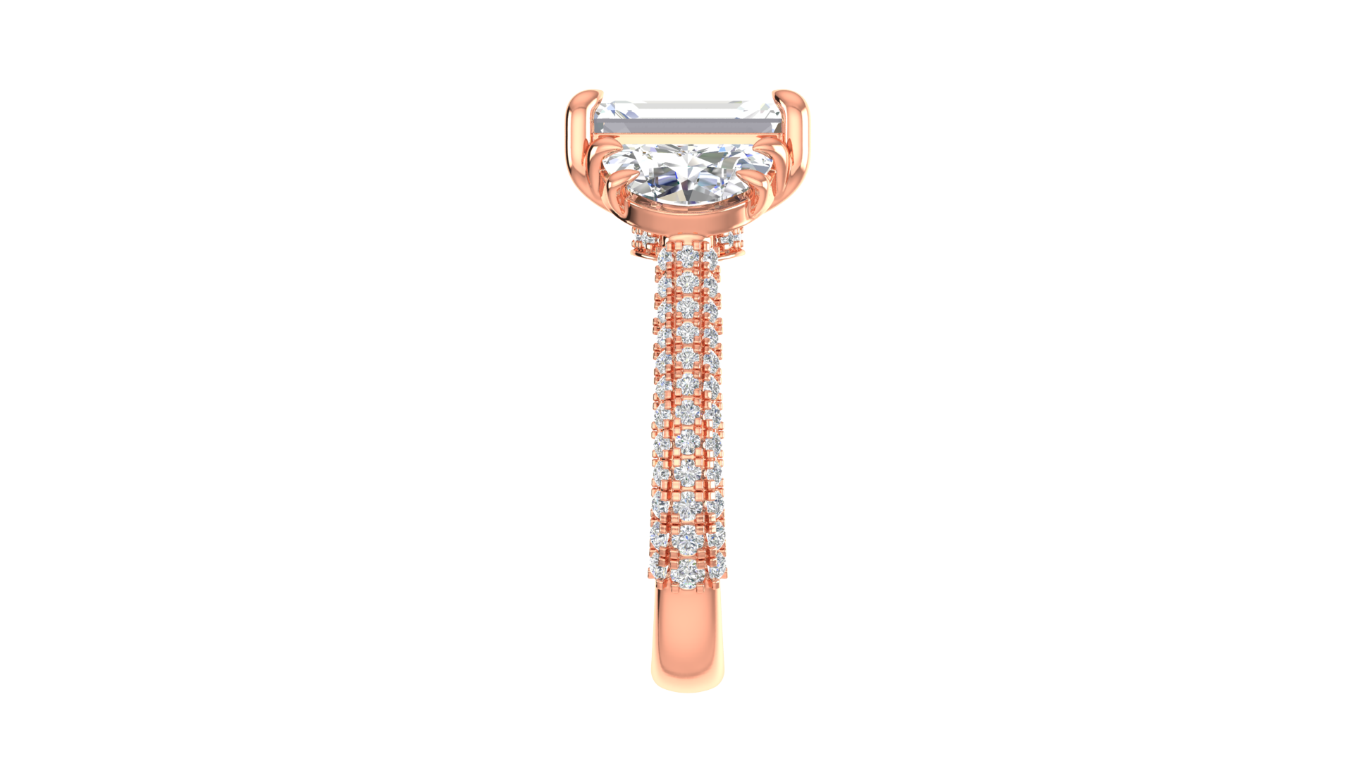 3 Carat Emerald Cut Engagement Ring With Half-Moon Side Stones In 14K Rose Gold