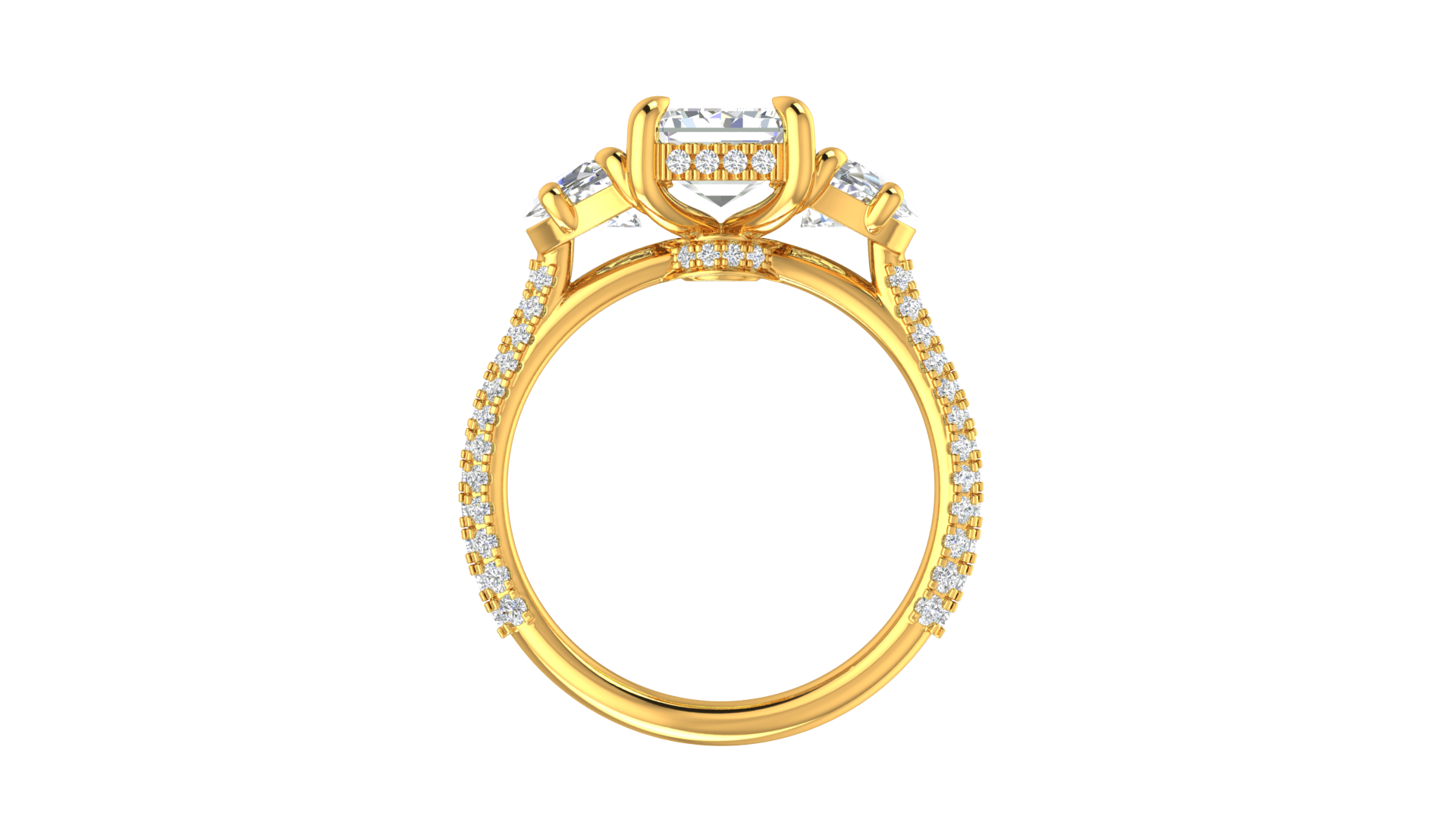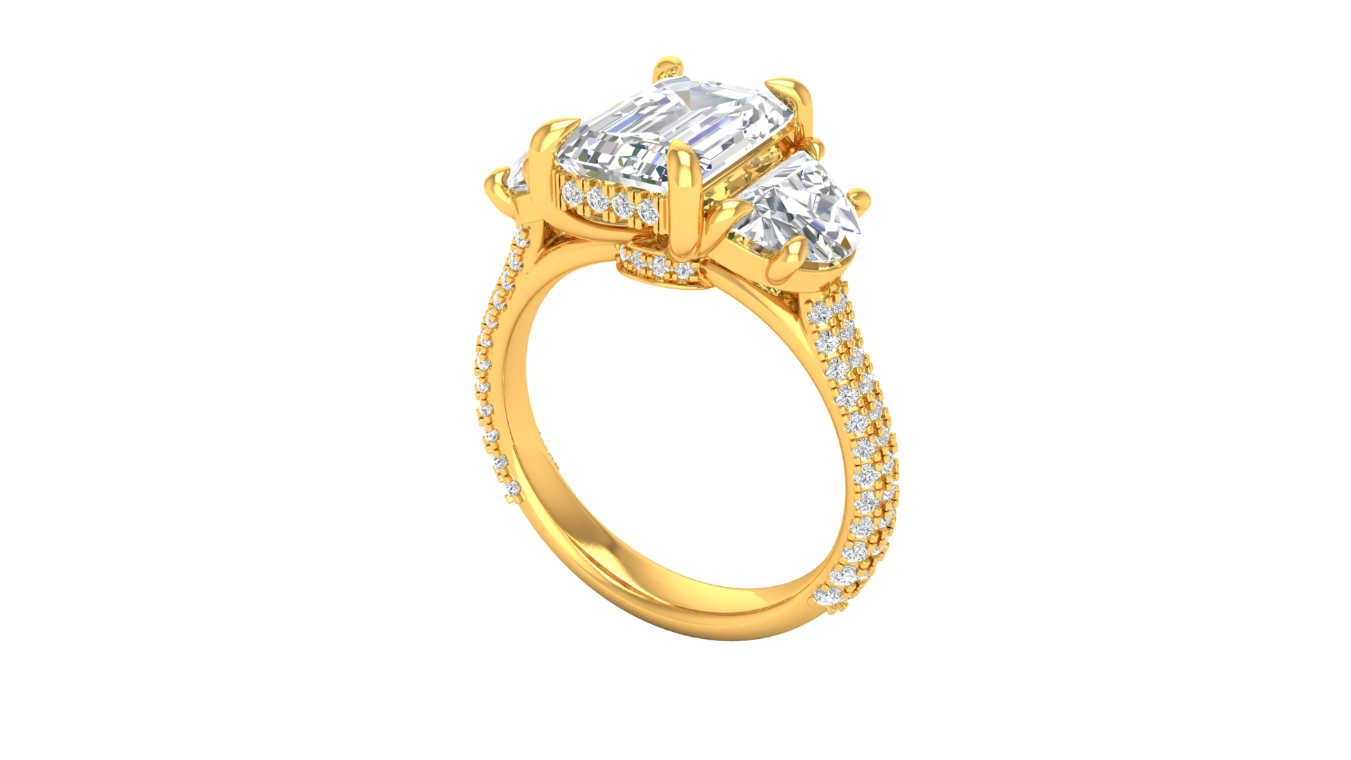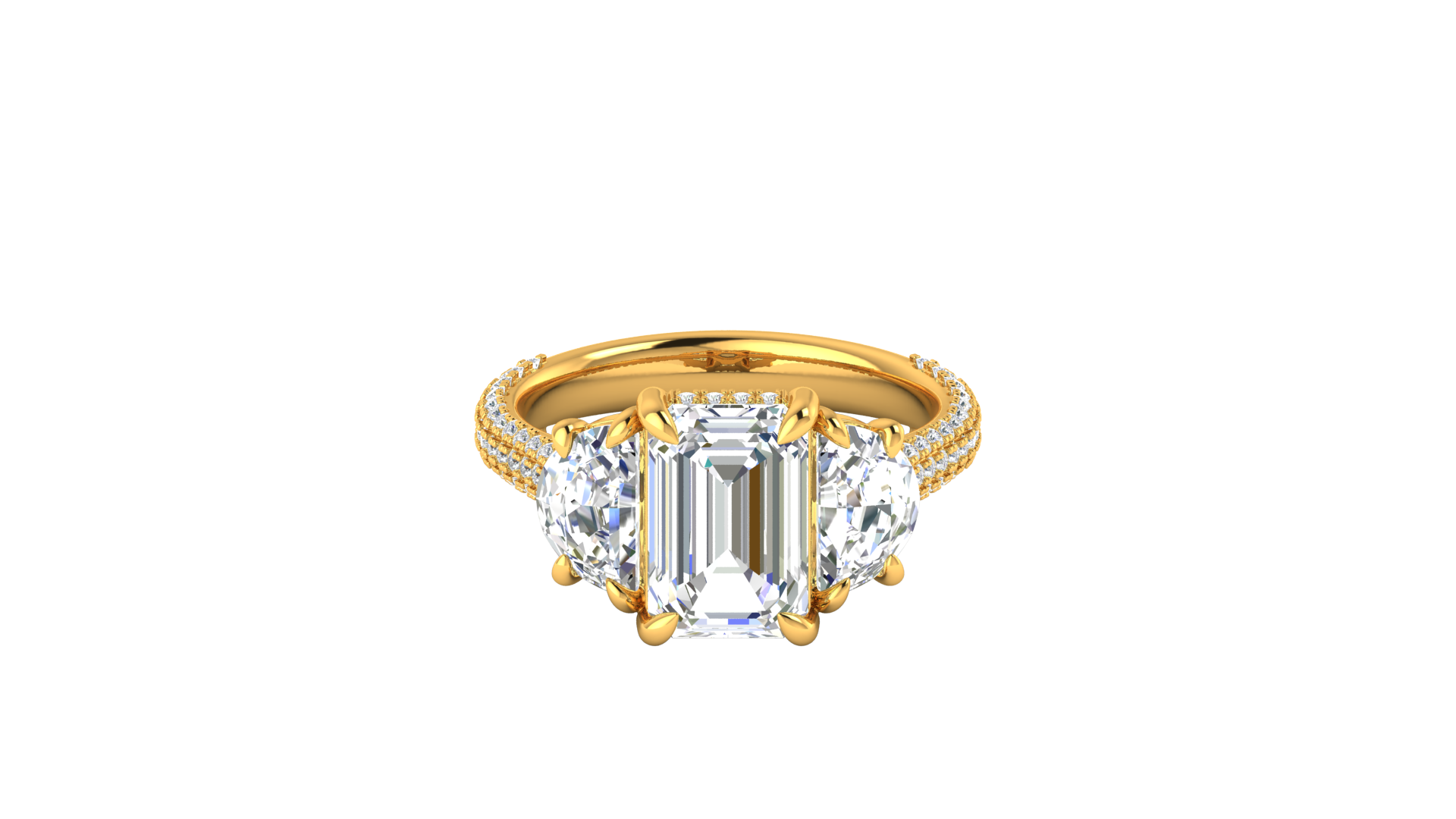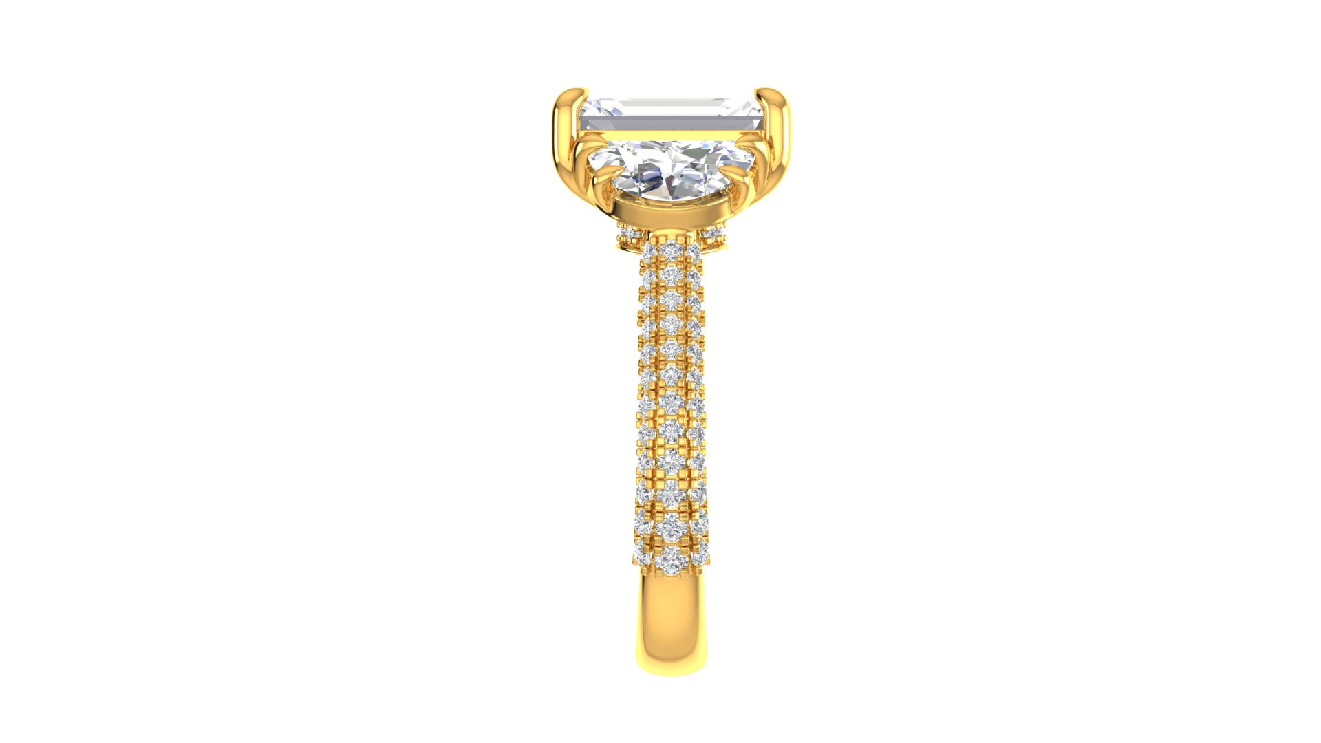 3 Carat Emerald Cut Engagement Ring With Half-Moon Side Stones In 14K Yellow Gold