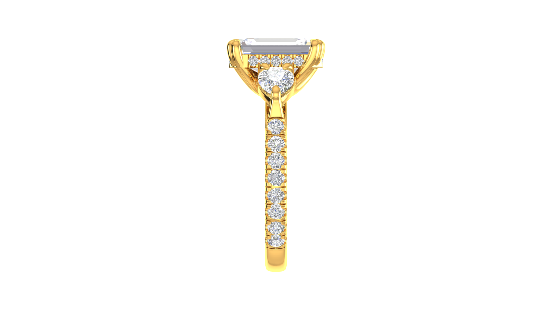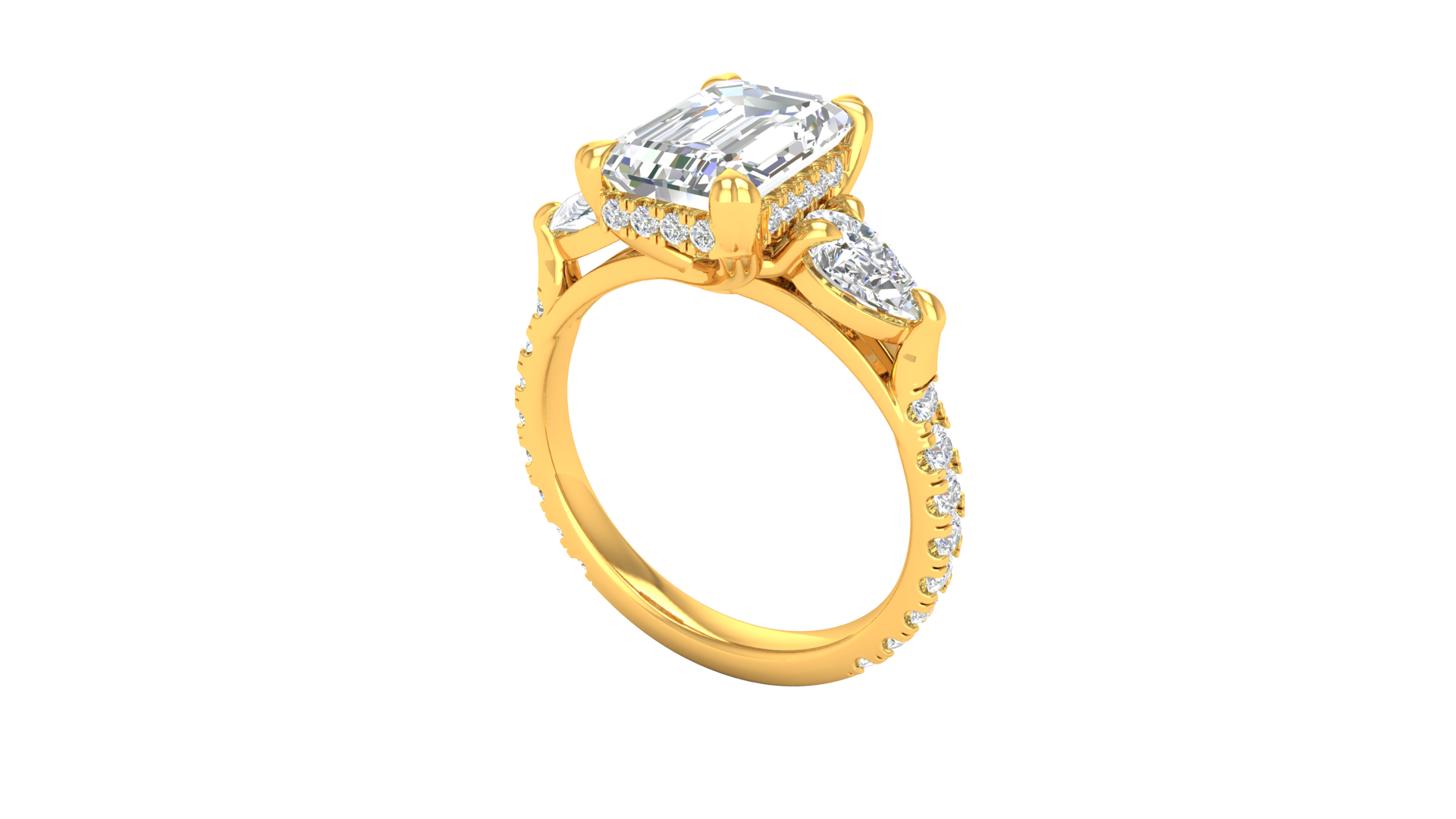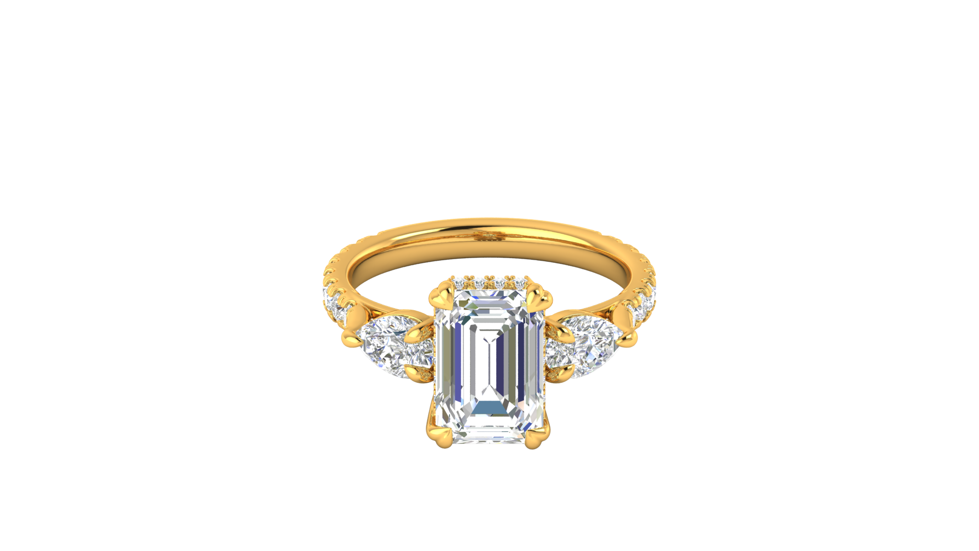 3 Carat Emerald Cut Engagement Ring With Pear Side Stones In 14K Yellow Gold