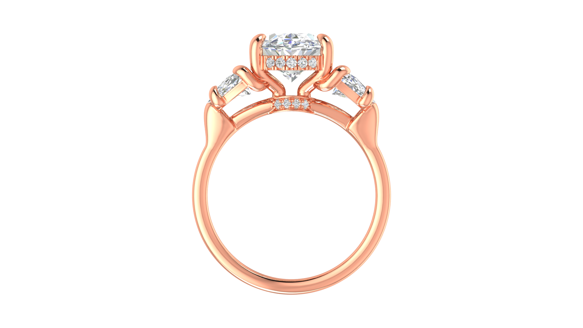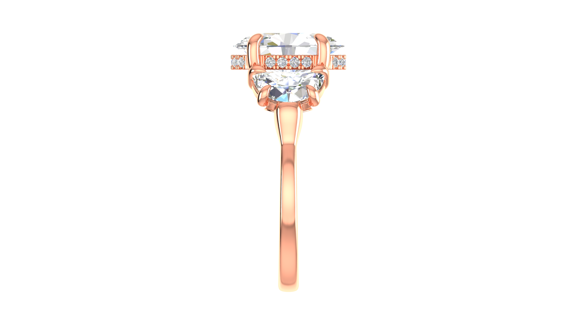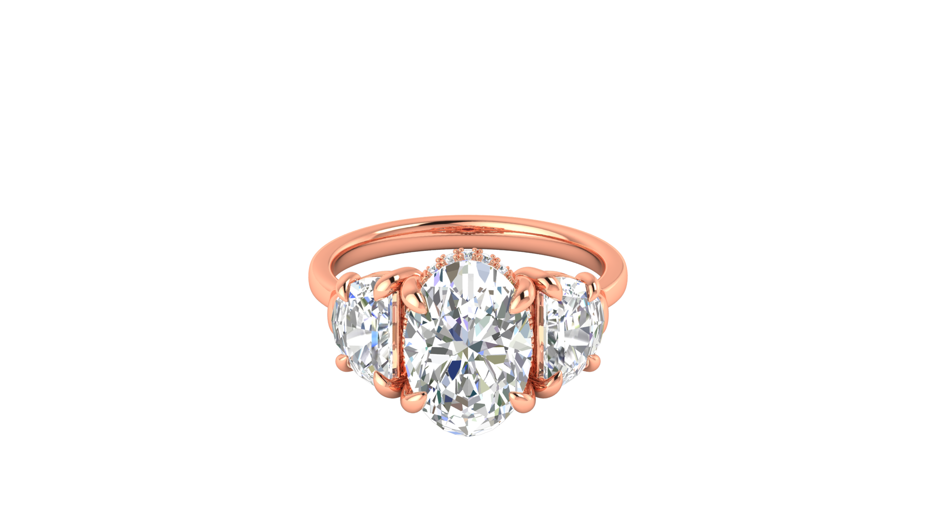 3 Carat Oval Cut Engagement Ring With Half Moon Side Stones In 14K Rose Gold