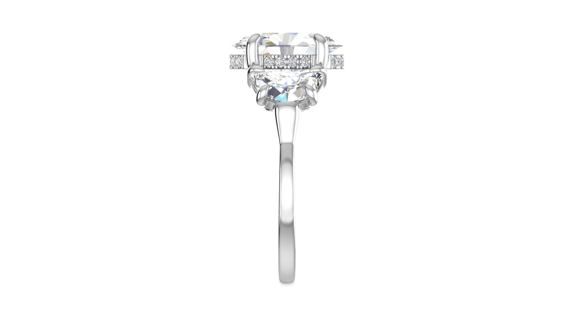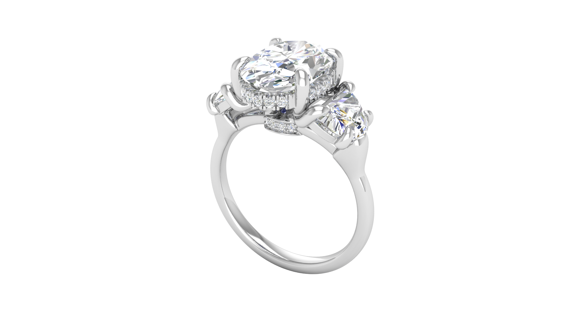3 Carat Oval Cut Engagement Ring With Half Moon Side Stones In 14K White Gold