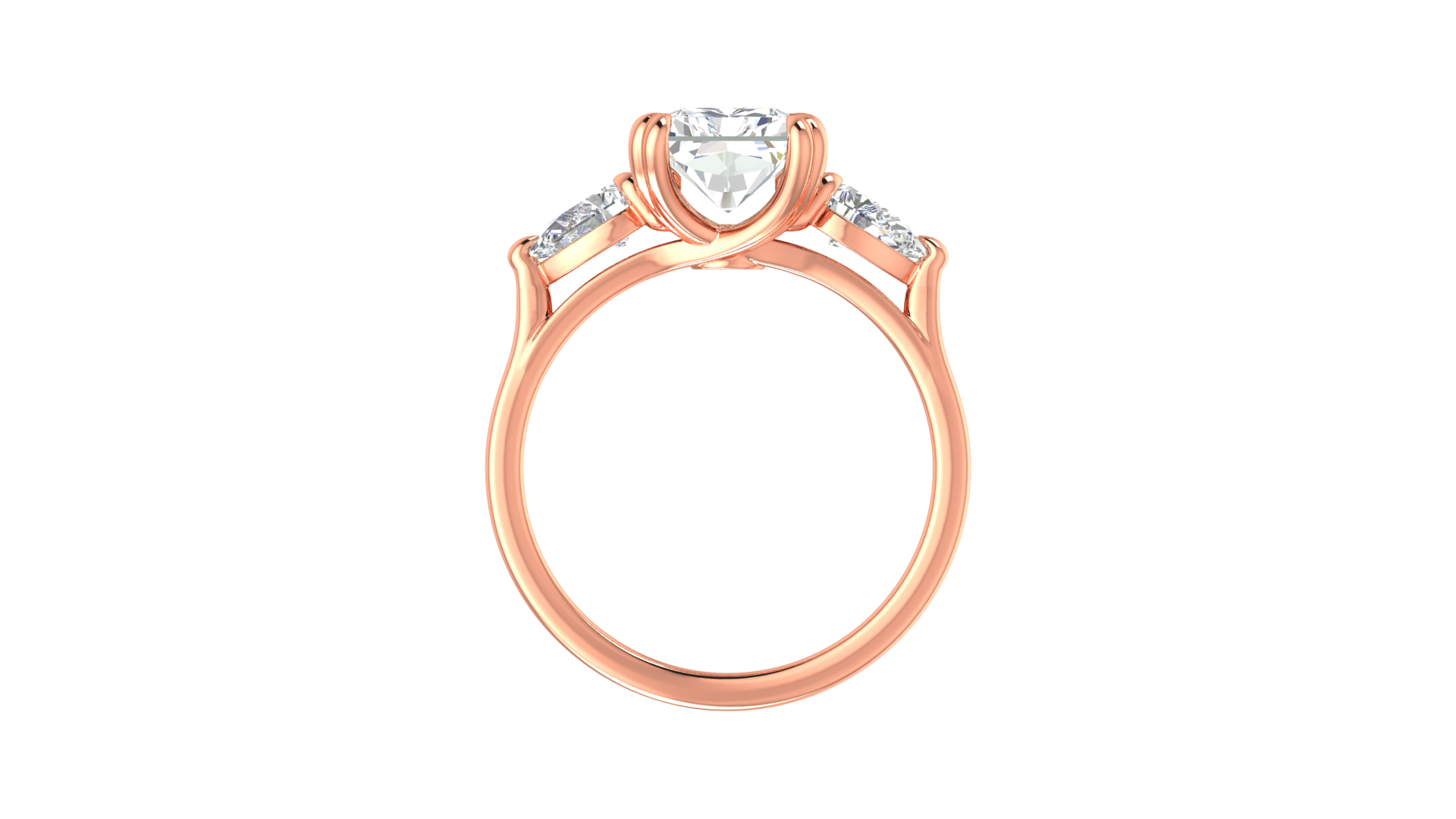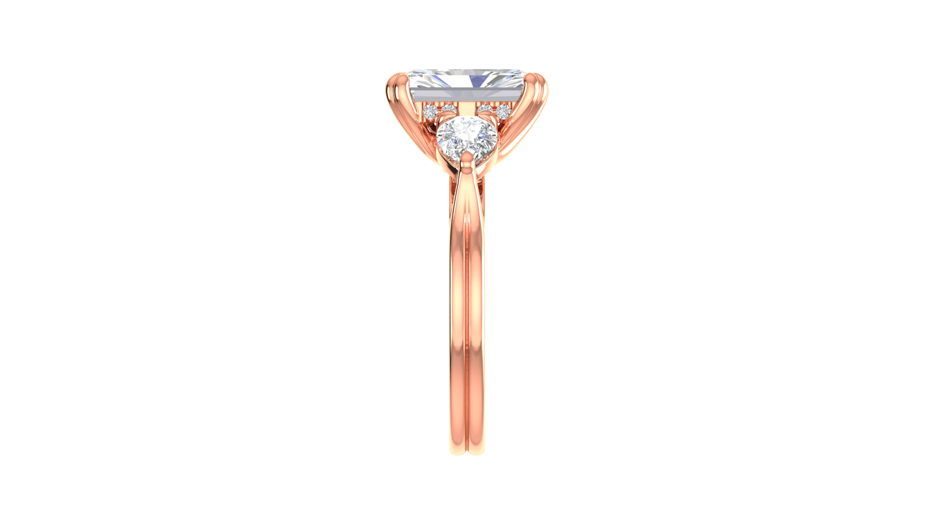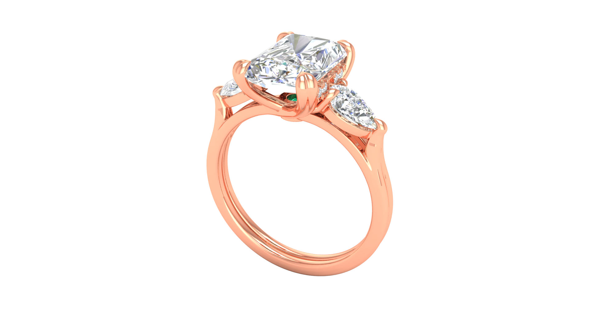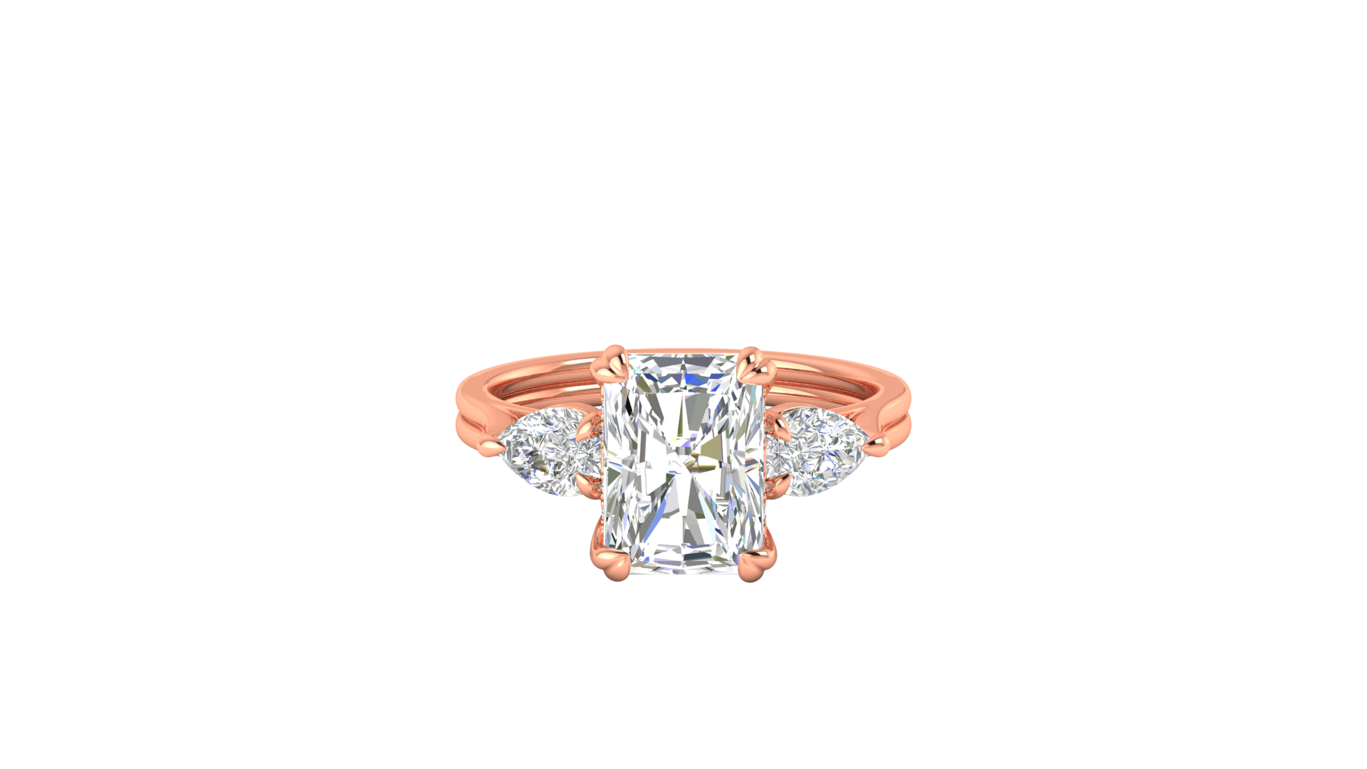3 Carat Radiant Cut Engagement Ring With Pear Shaped Side Stones In 14K Rose Gold