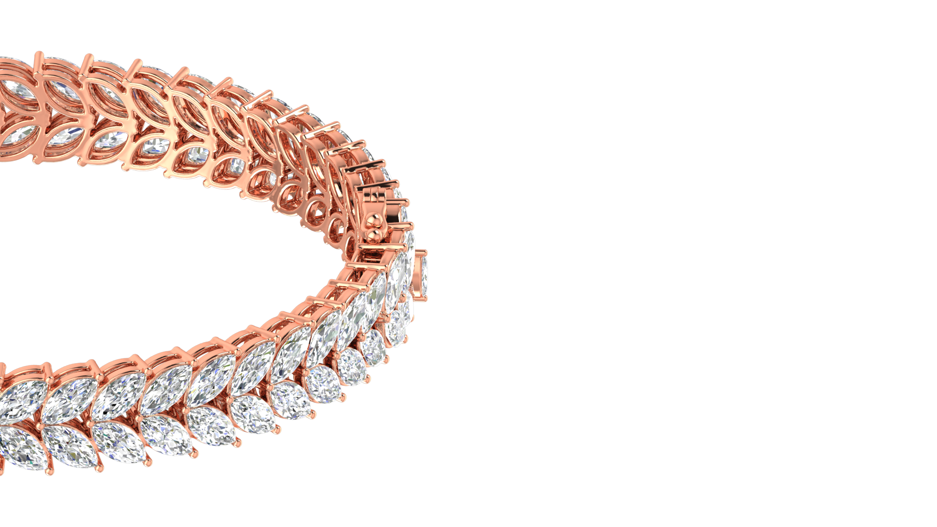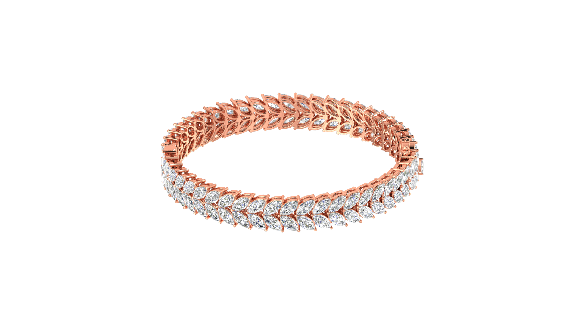 37.60 Ctw Marquise Cut Diamond Bangle | Marquise Leaf Diamond Bangle Set In Luxury 14K Rose Gold