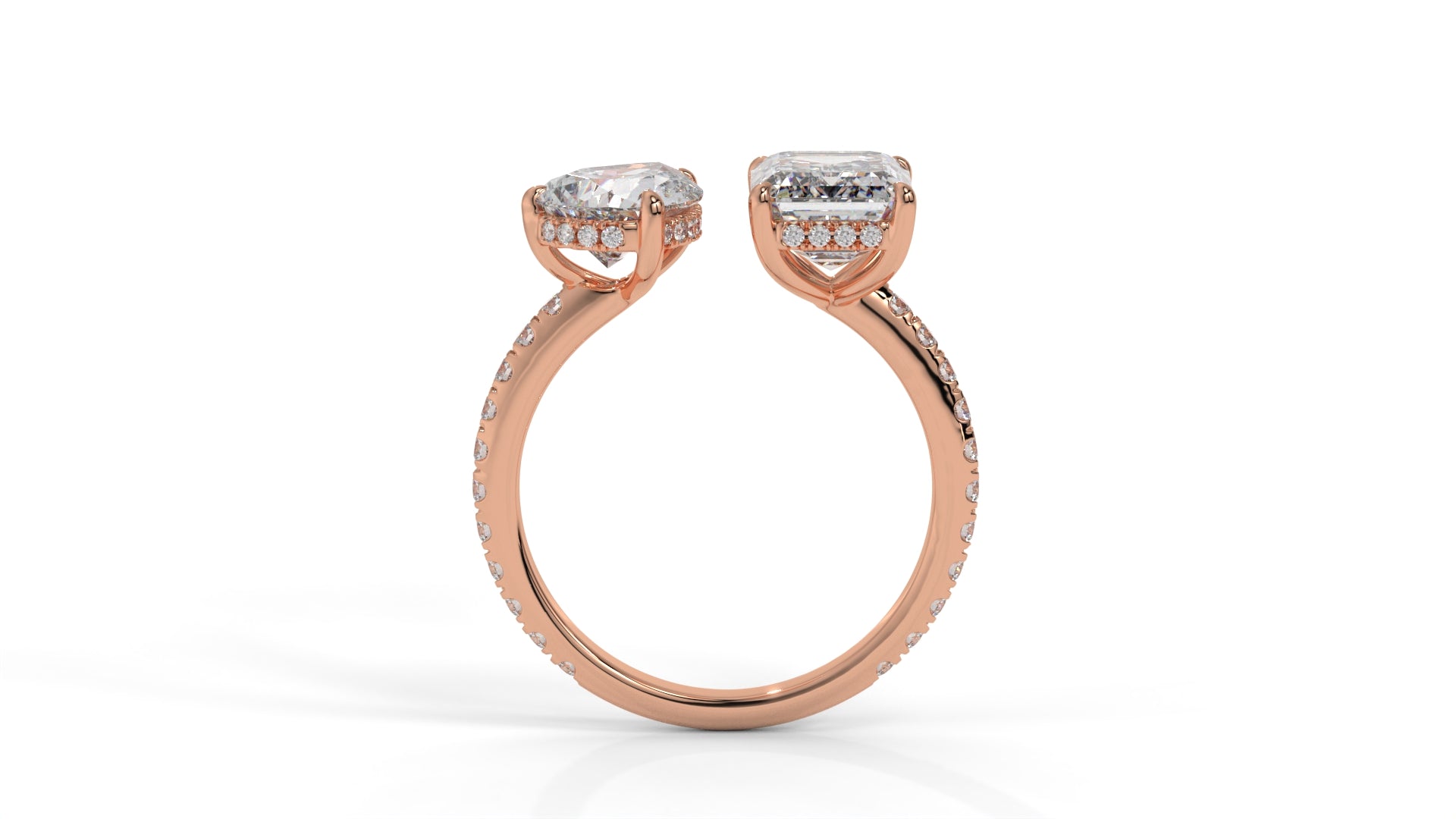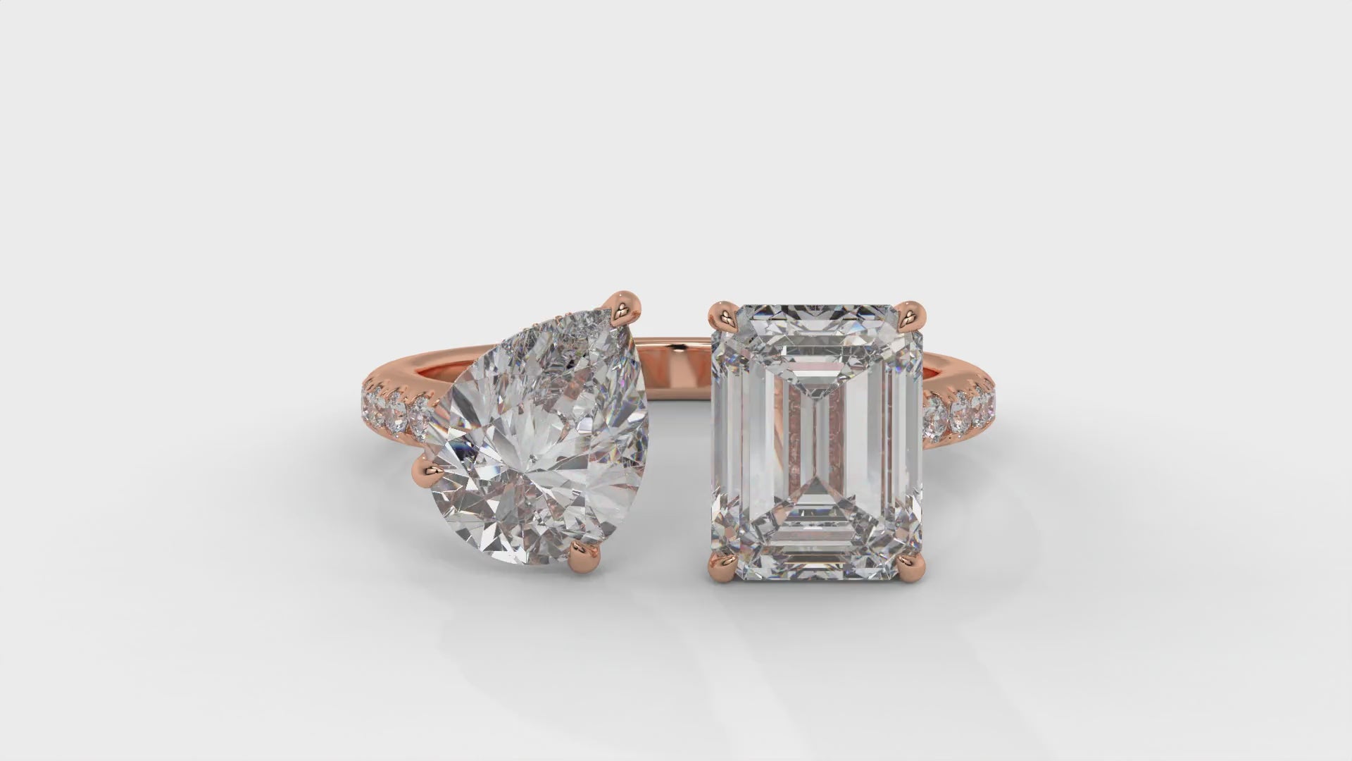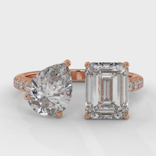 4.50 CTW Toi et Moi Diamond Ring in 14K Rose Gold with Pear and Emerald Cut Diamonds