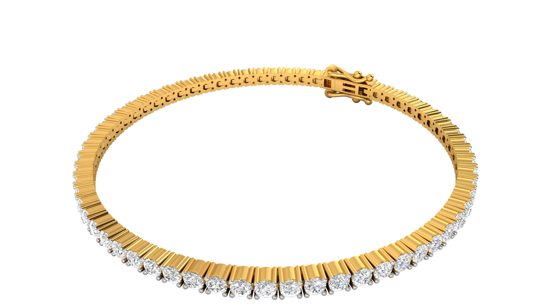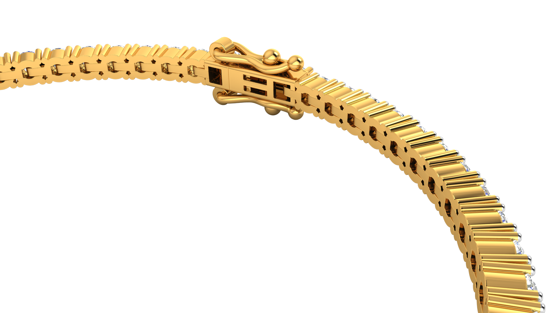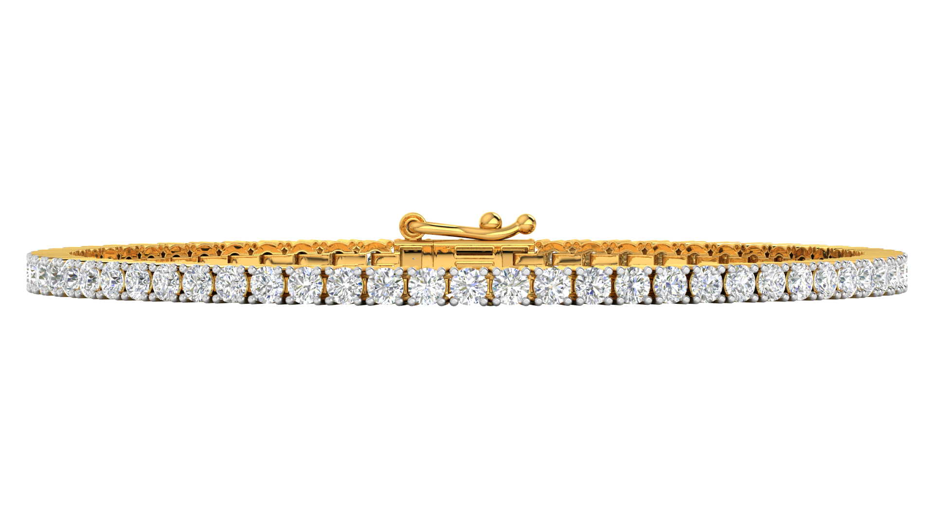 This tennis bracelet, crafted from 14K yellow gold, features a sleek and elegant design adorned with round brilliant-cut diamonds. Each stone is carefully set in prongs to enhance its sparkle and brilliance, while VS clarity and F color add to the bracelet's luxurious appeal. The secure clasp ensures that it stays firmly in place, making it a perfect accessory for any occasion.