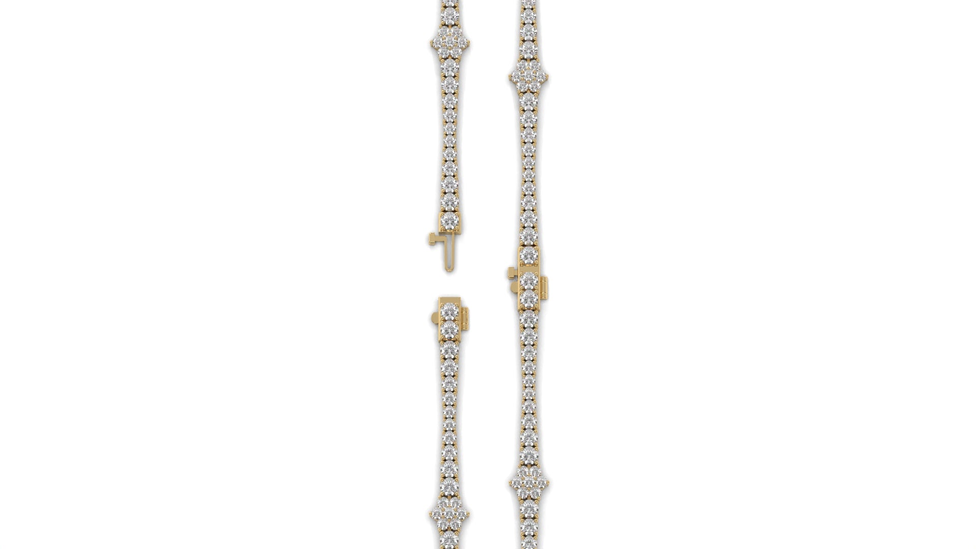 This 4.95 carat total weight diamond tennis bracelet is crafted in 14K yellow gold, featuring a continuous line of brilliant round-cut diamonds that deliver exceptional sparkle and elegance. The classic... Show More