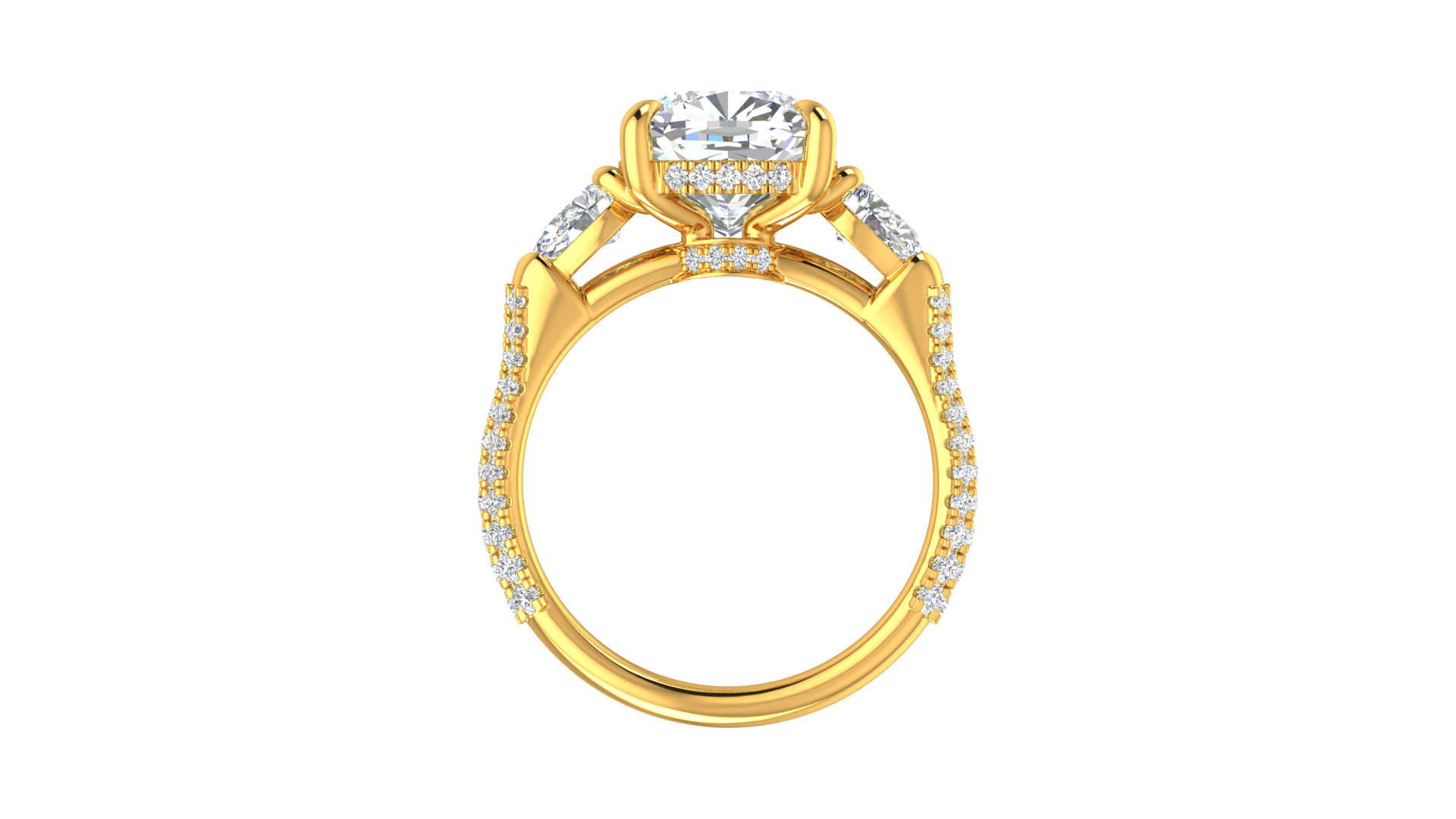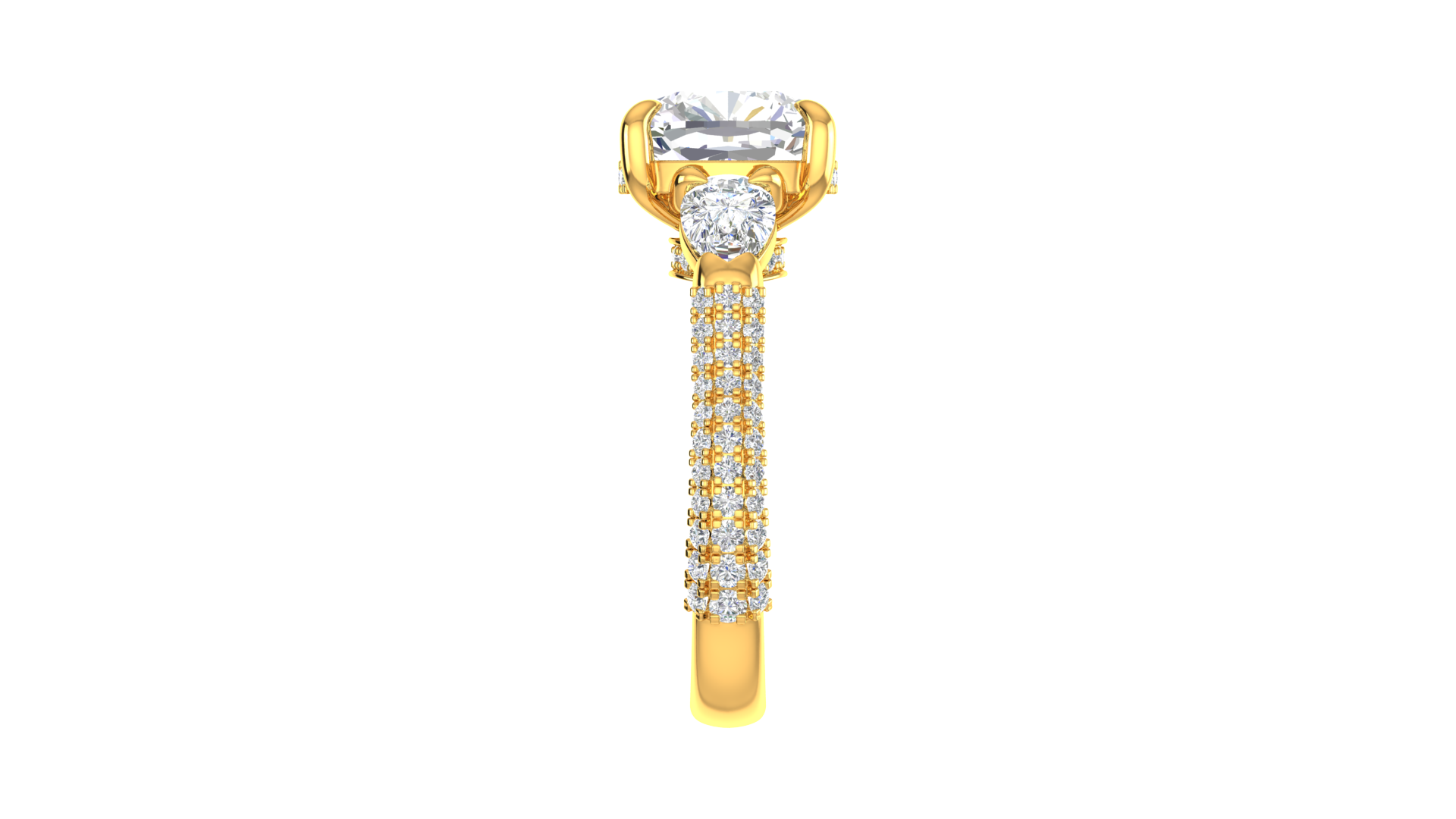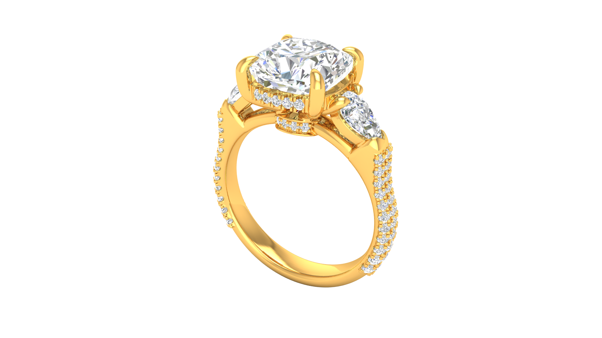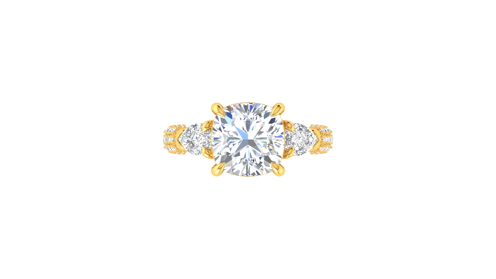 4 Carat Cushion-Cut Engagement Ring With Pear-Shaped Side Stones In 14K Yellow Gold