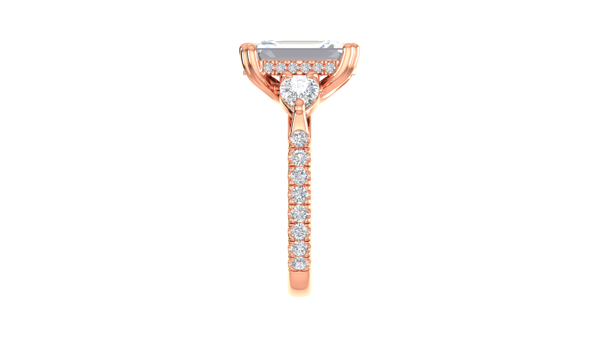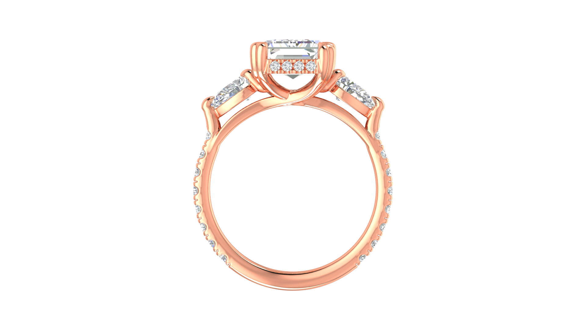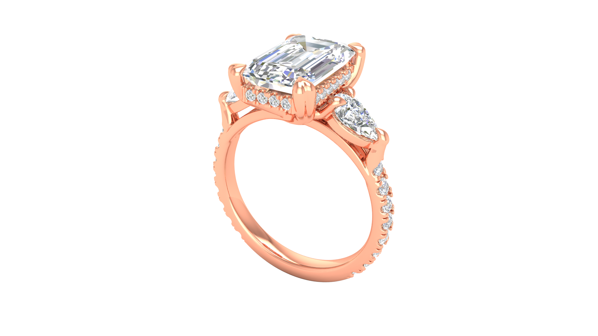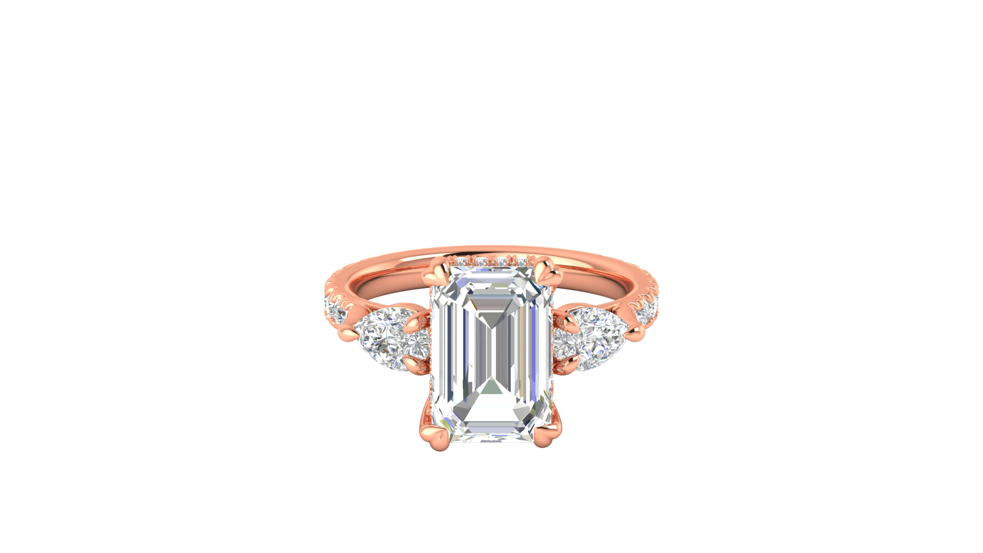 4 Carat Emerald Cut Engagement Ring With Pear Side Stones In 14K Rose Gold