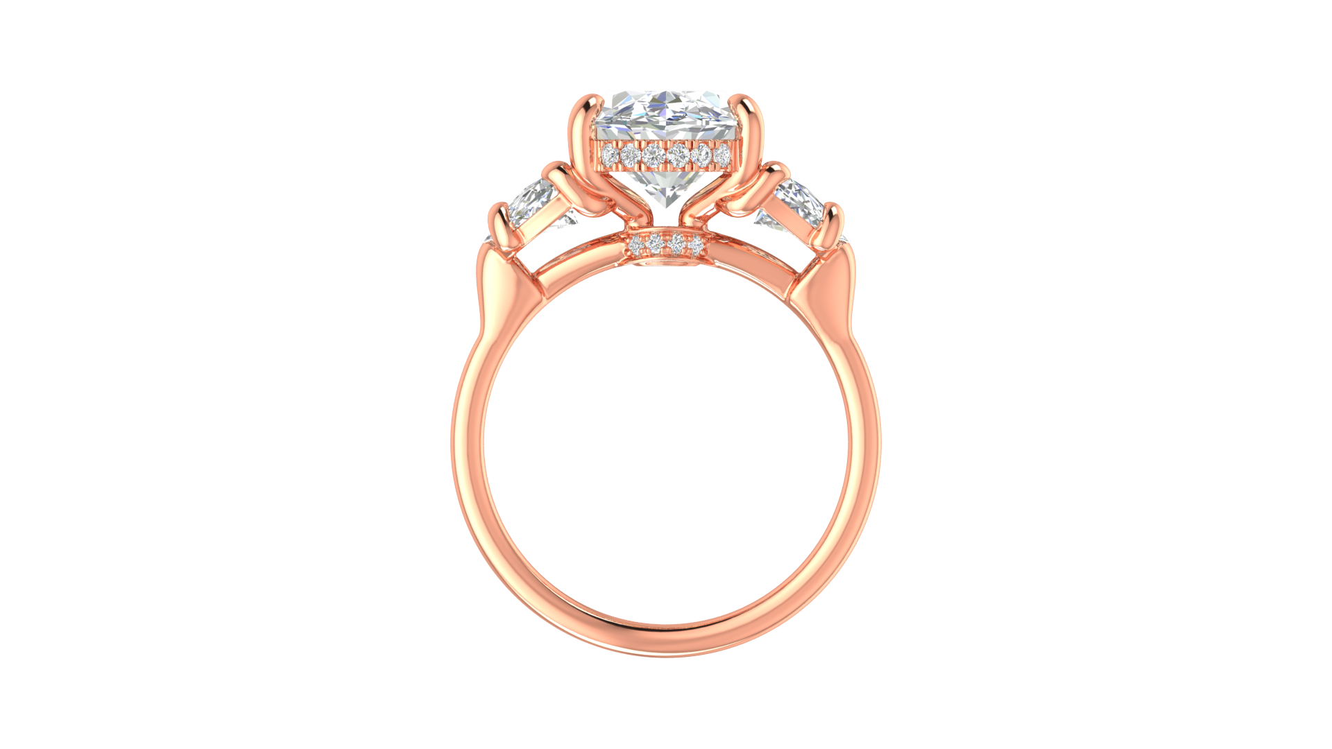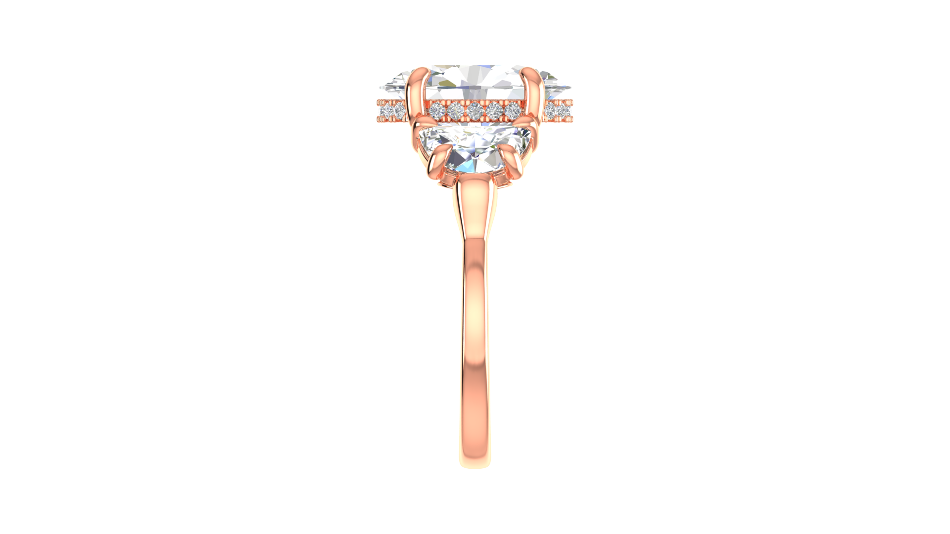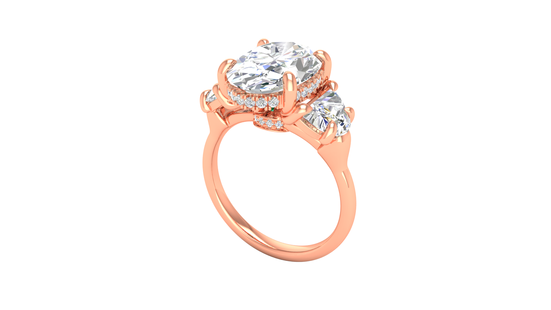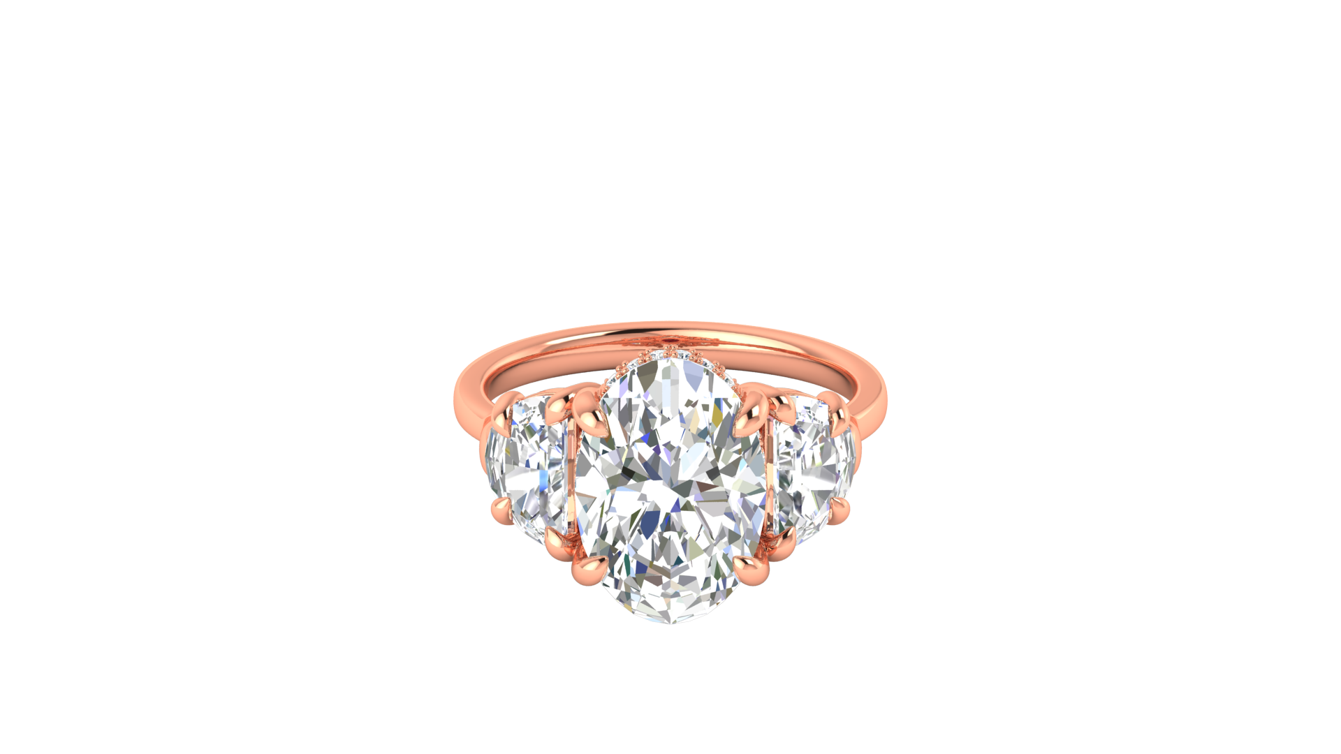 4 Carat Oval Cut Engagement Ring With Half Moon Side Stones In 14K Rose Gold