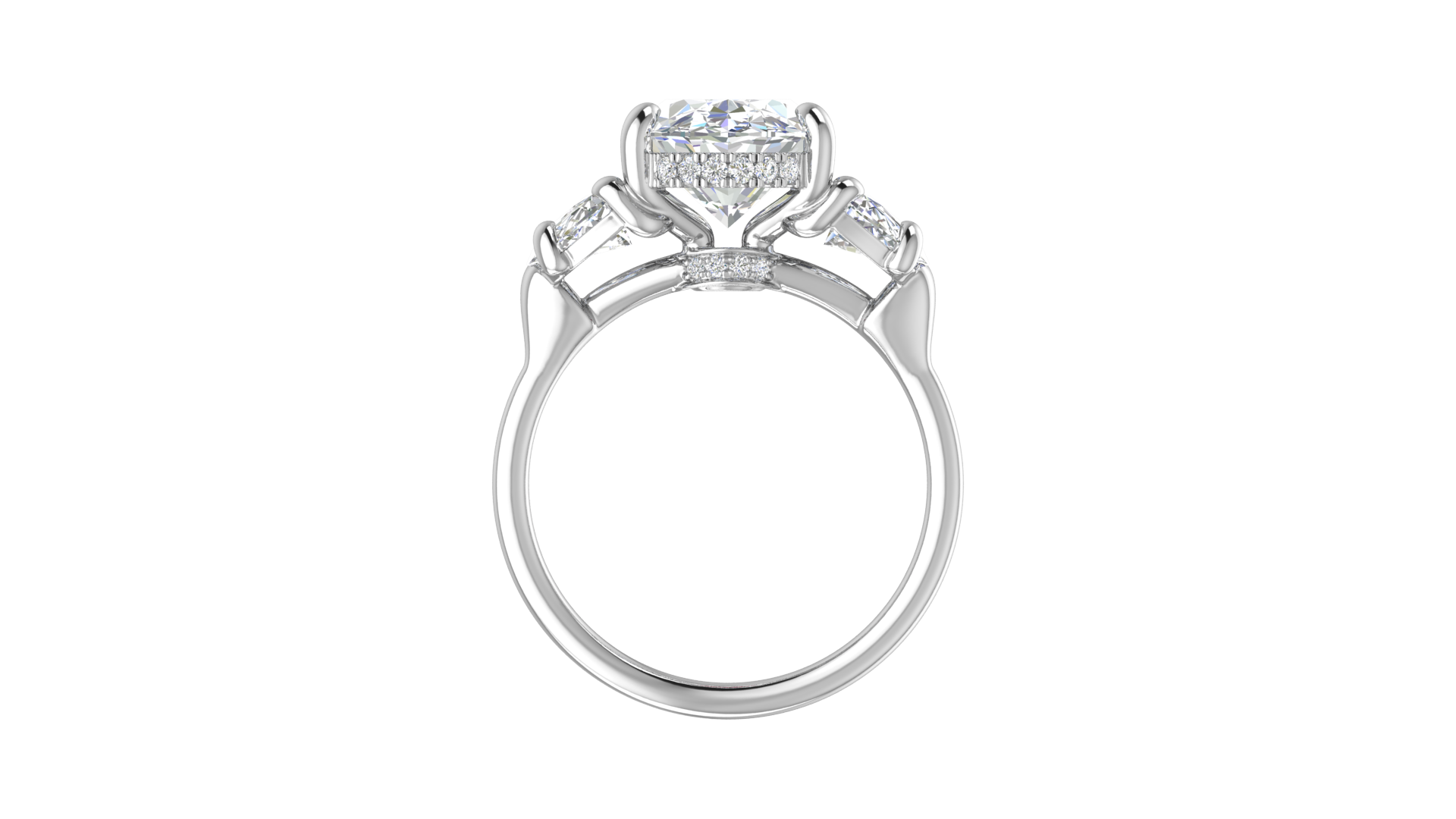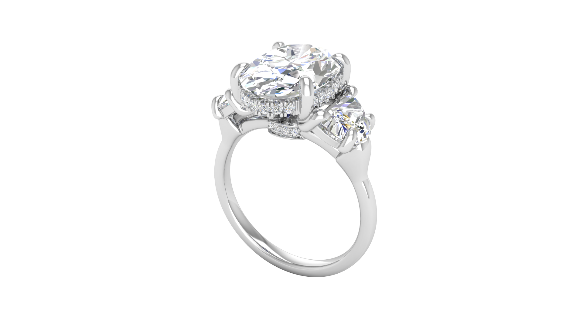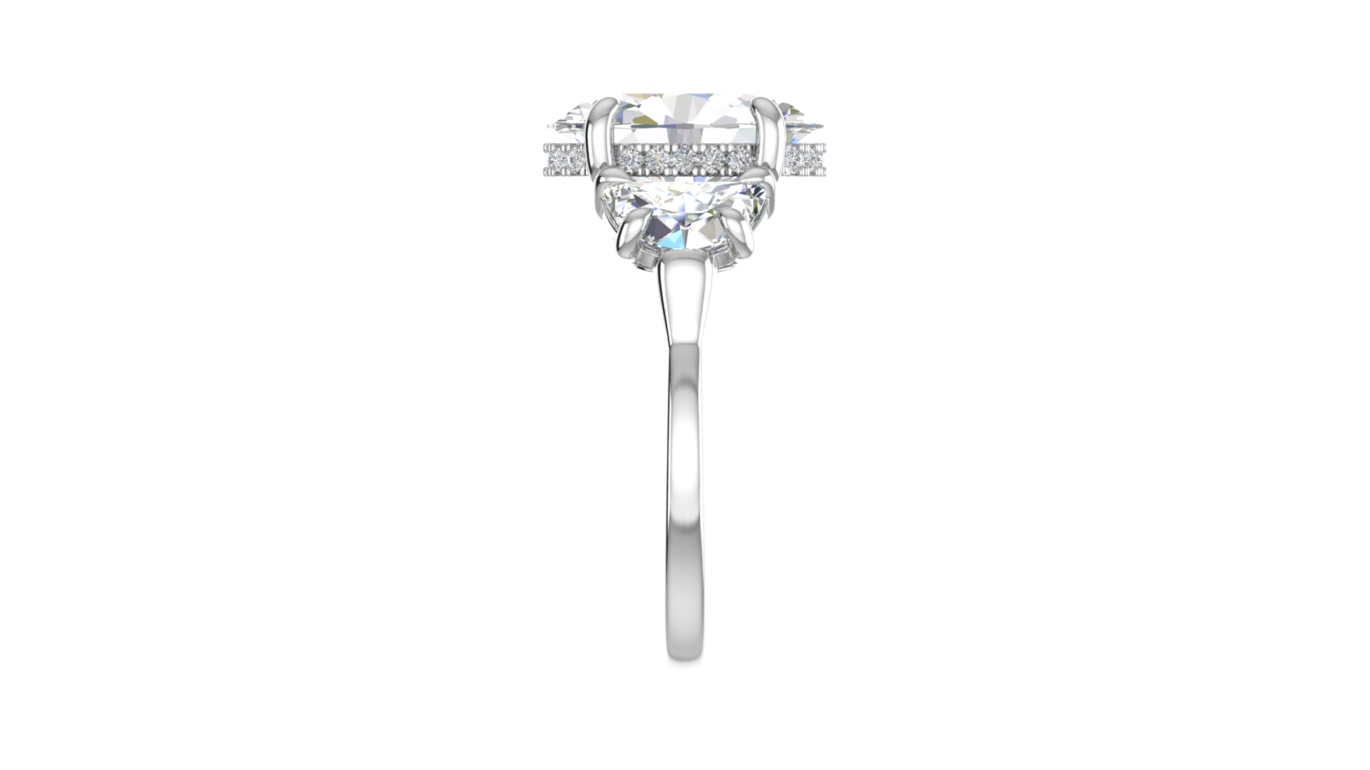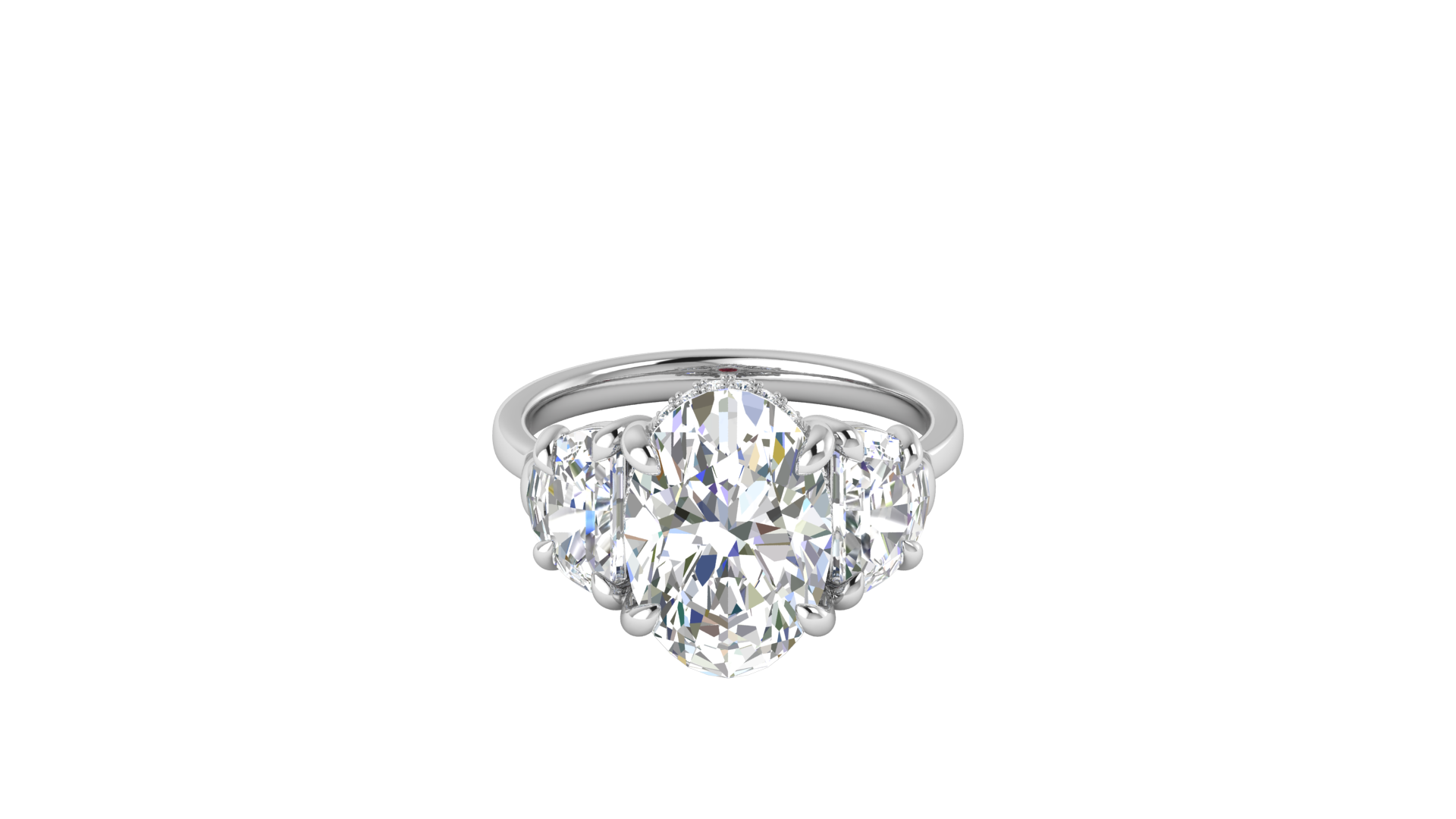 4 Carat Oval Cut Engagement Ring With Half Moon Side Stones In 14K White Gold