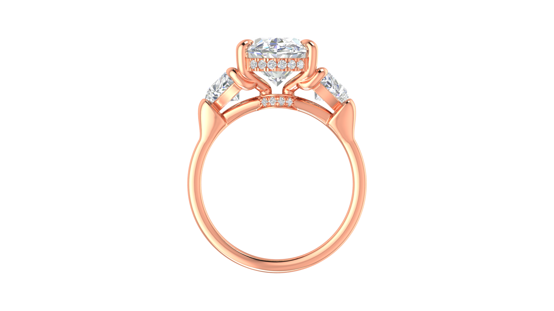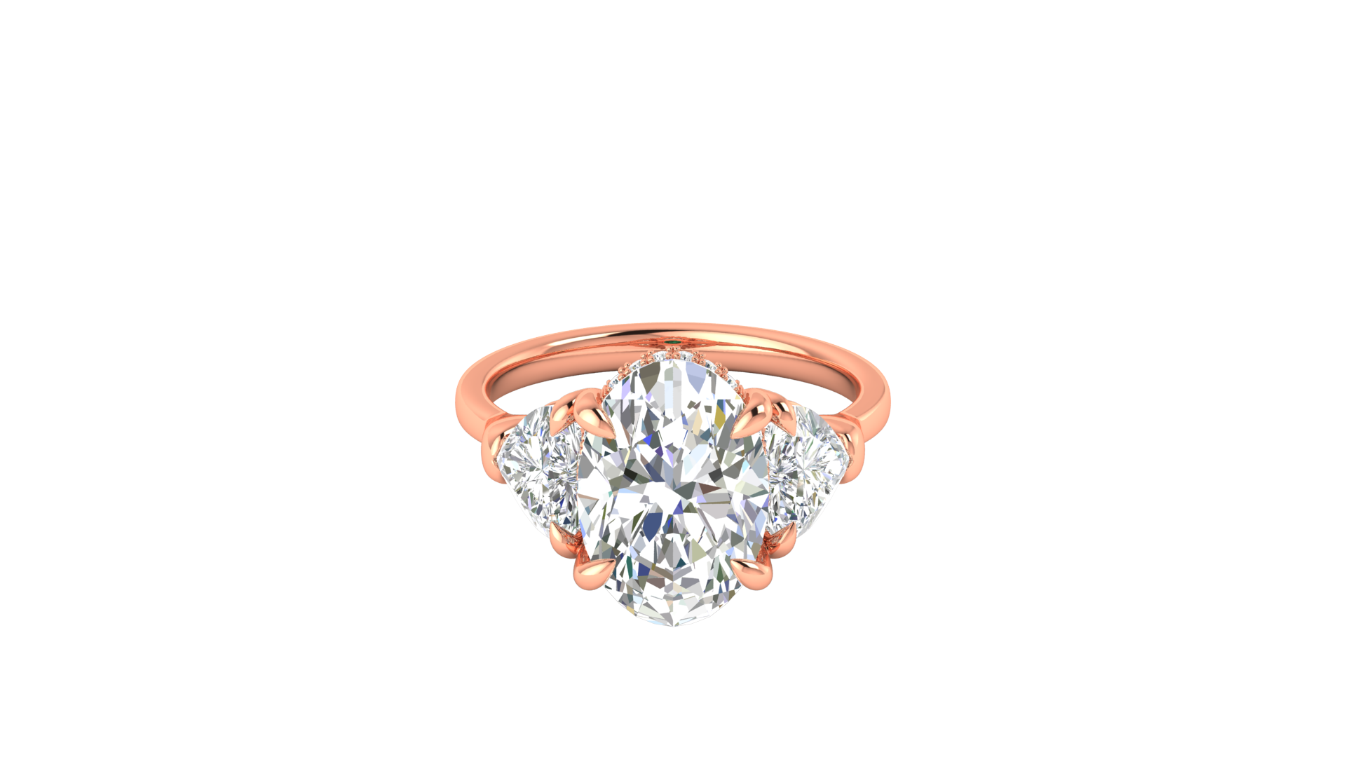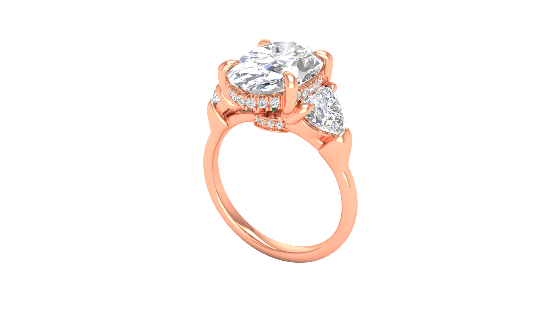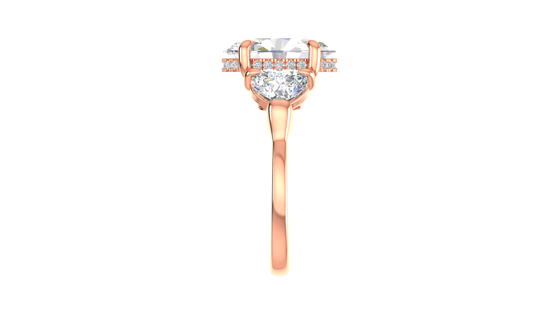 4 Carat Oval Cut Engagement Ring With Heart Shape Side Stones In 14K Rose Gold