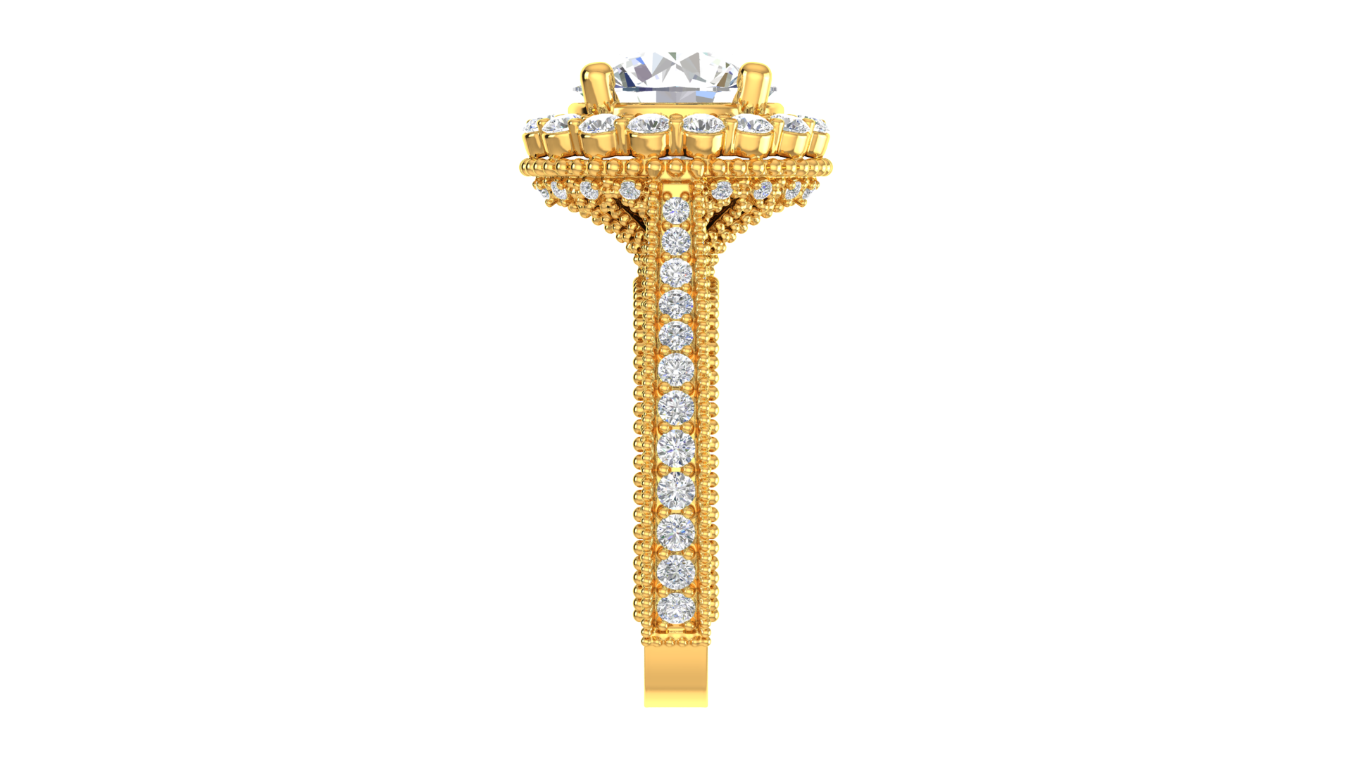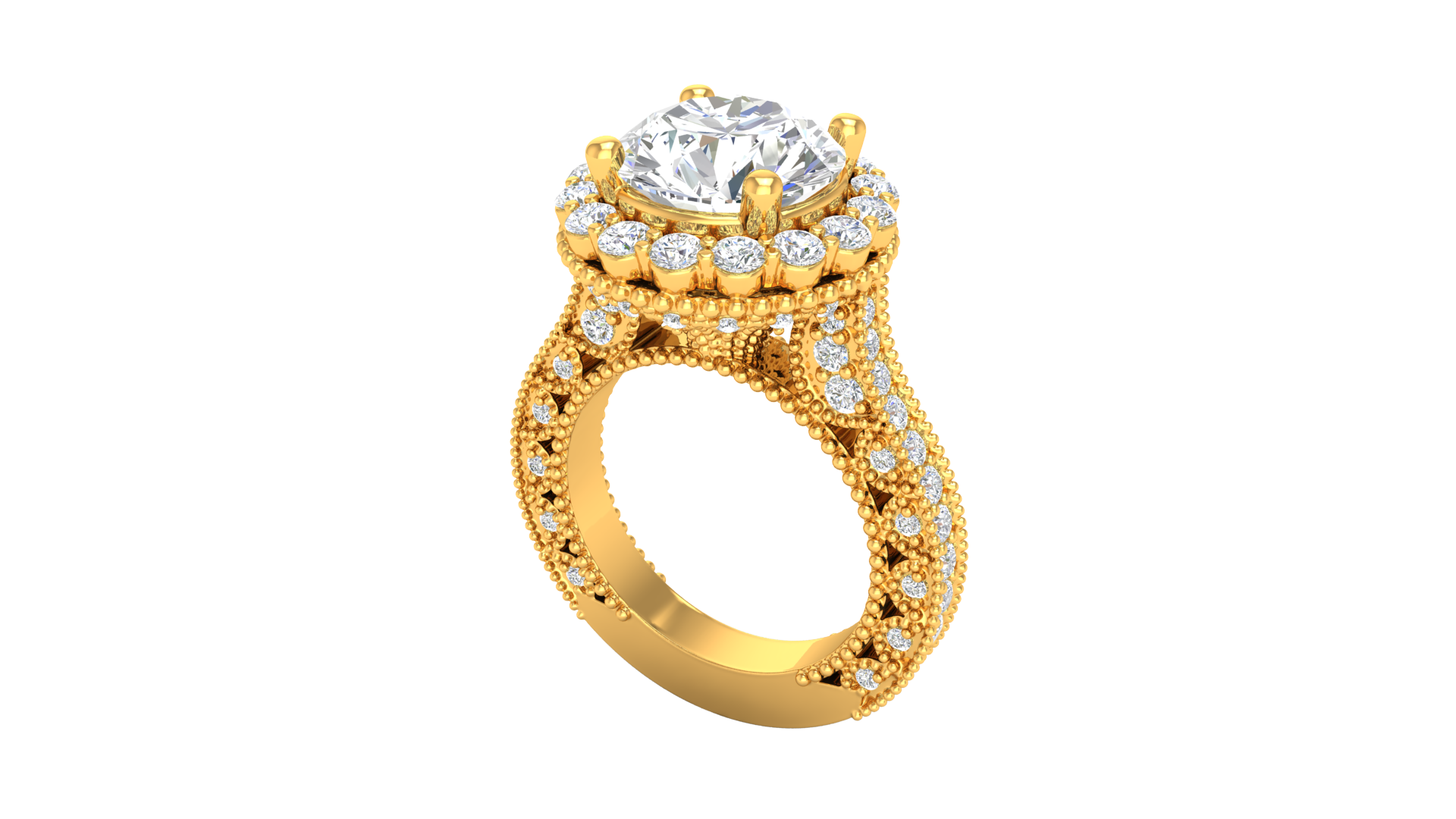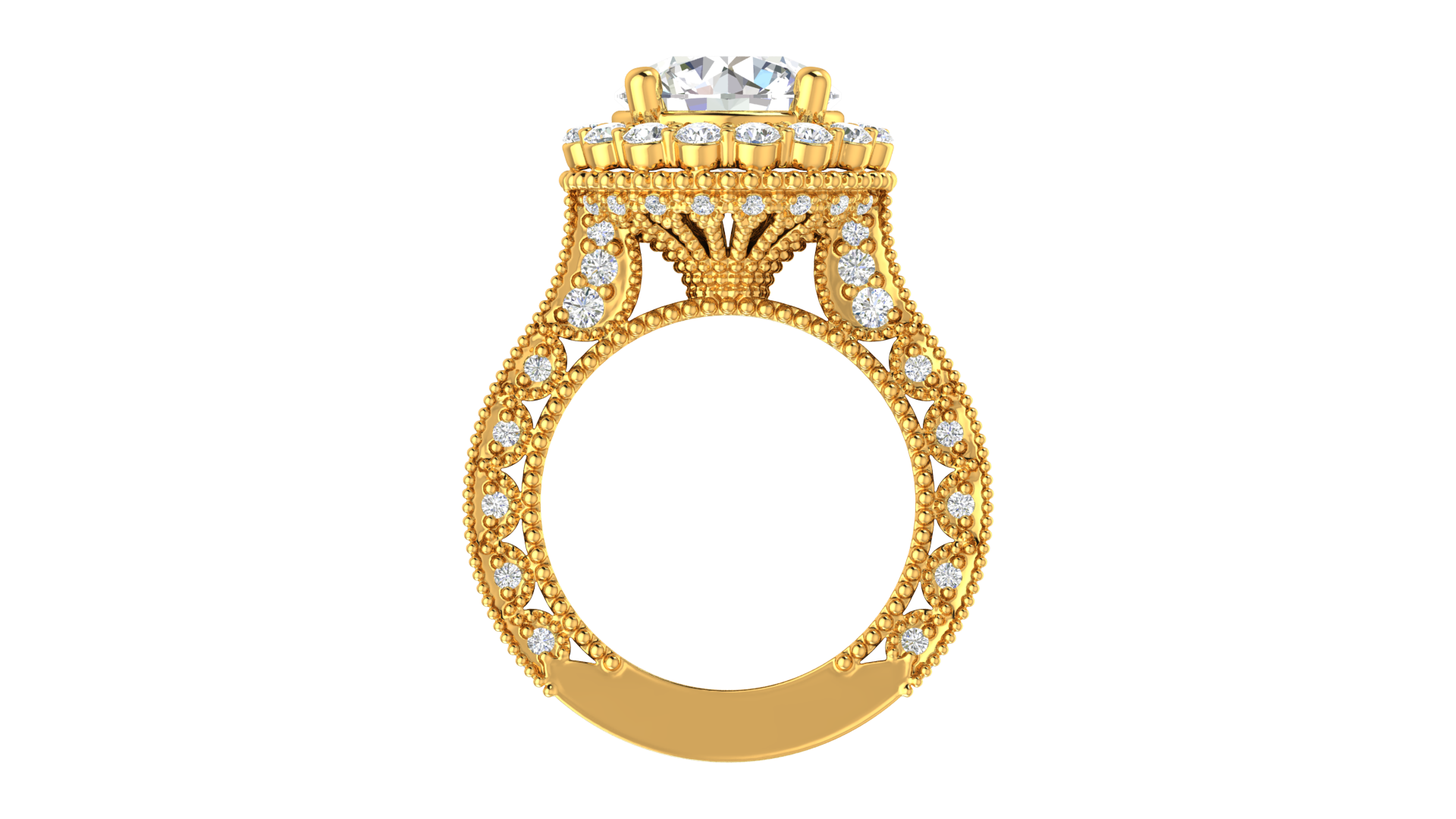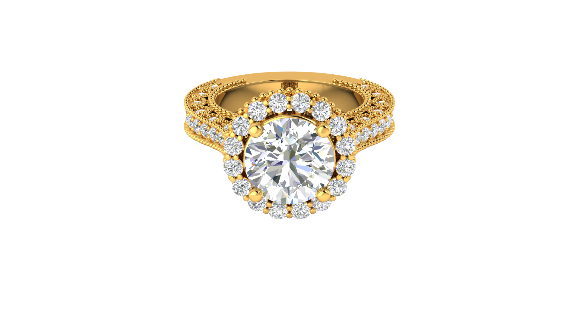 Elevate your love story with this 4-carat vintage-style round engagement ring, crafted in luxurious 14k yellow gold. Featuring a breathtaking round-cut center stone surrounded by intricate milgrain detailing and antique-inspired accents, this ring is a true masterpiece. Perfect for those who adore timeless elegance with a touch of sophistication. Shop now to own this breathtaking symbol of love and commitment, crafted with precision and care.