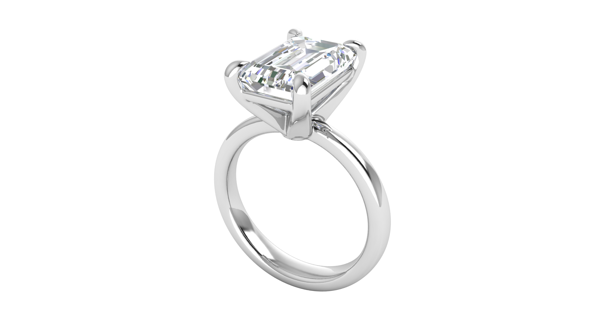 Make an unforgettable statement with this luxurious 5.00 CTW emerald-cut solitaire engagement ring. The impressive diamond is secured in a sleek four-prong setting, paired with a polished white gold band that exudes timeless elegance. Designed for those who seek bold brilliance and lasting sophistication.