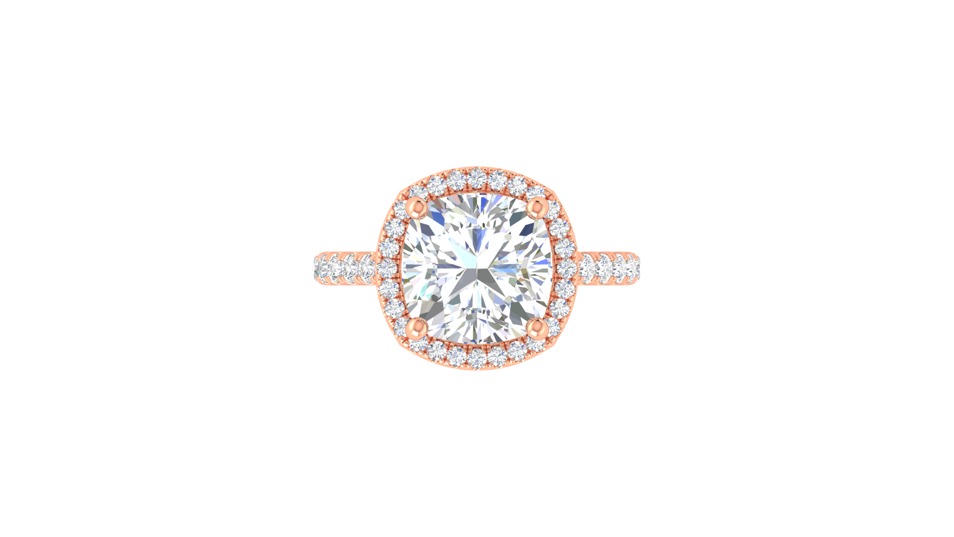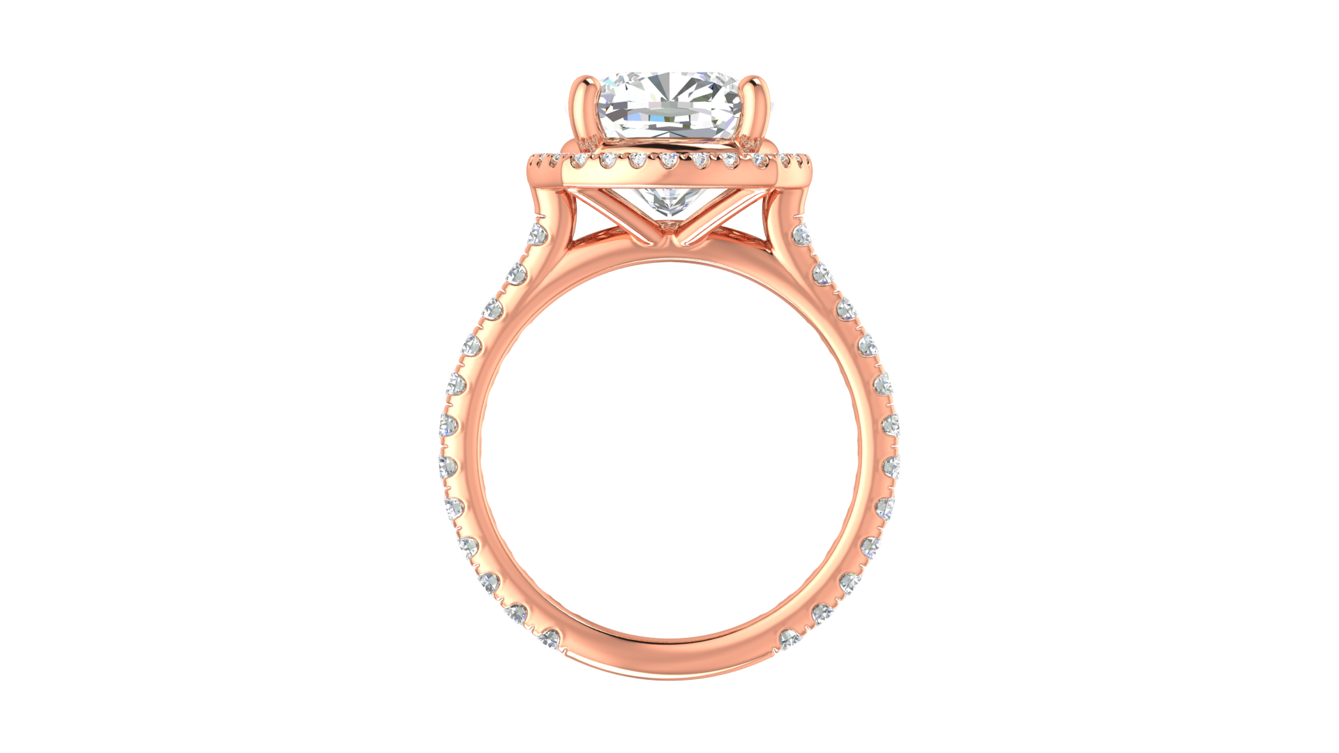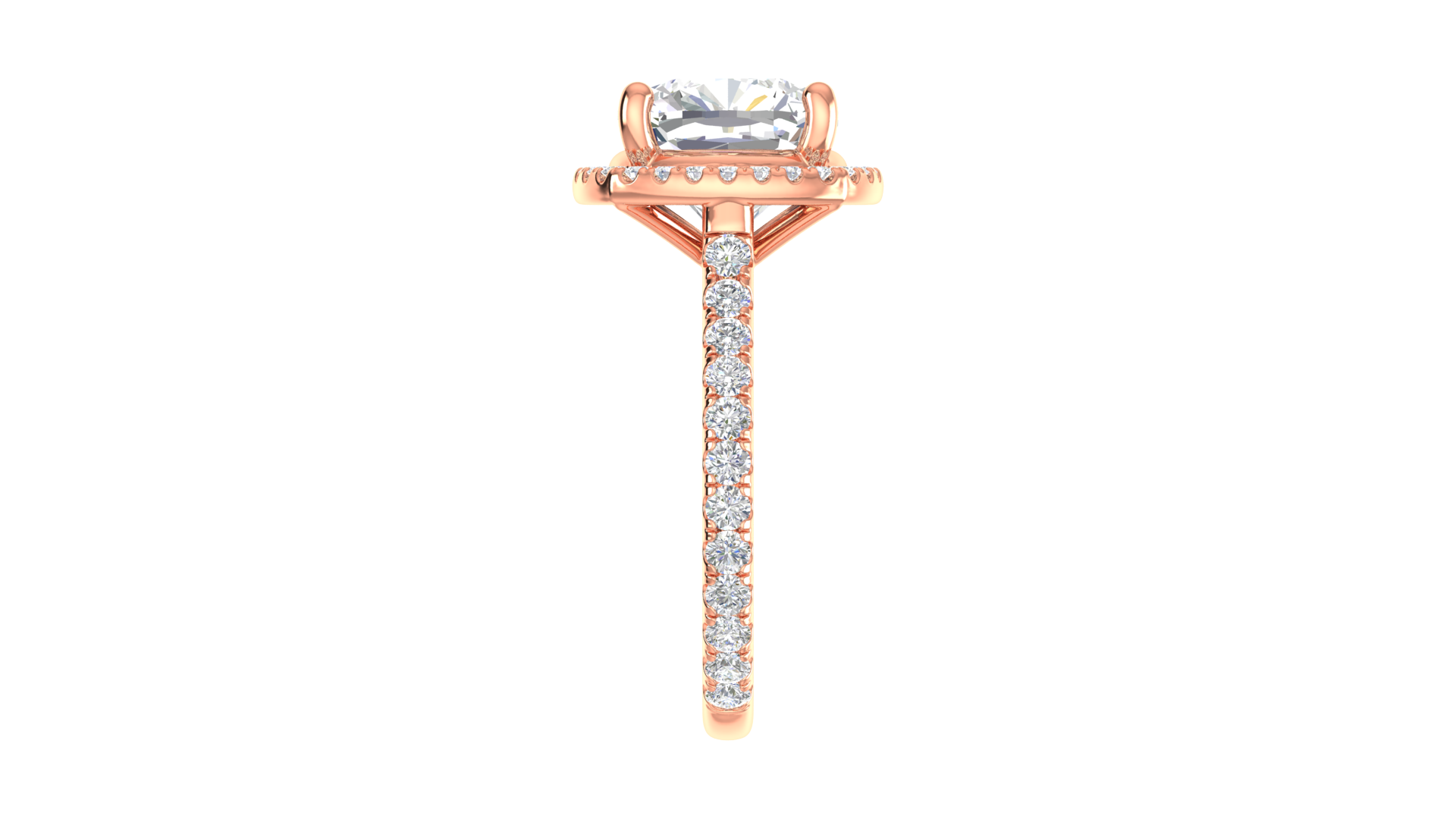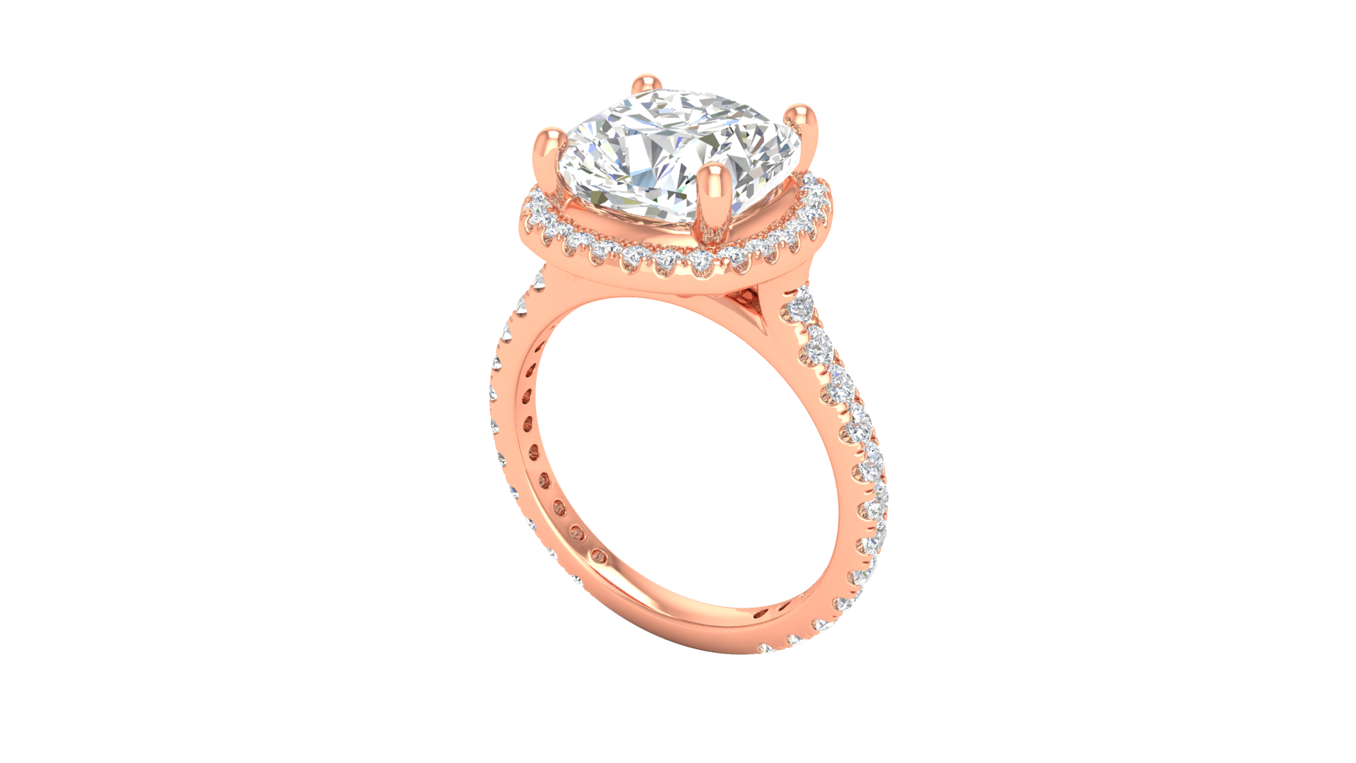 5 Carat Cushion Cut Halo Engagement Ring With Pavé Diamond Band In 14K Rose Gold