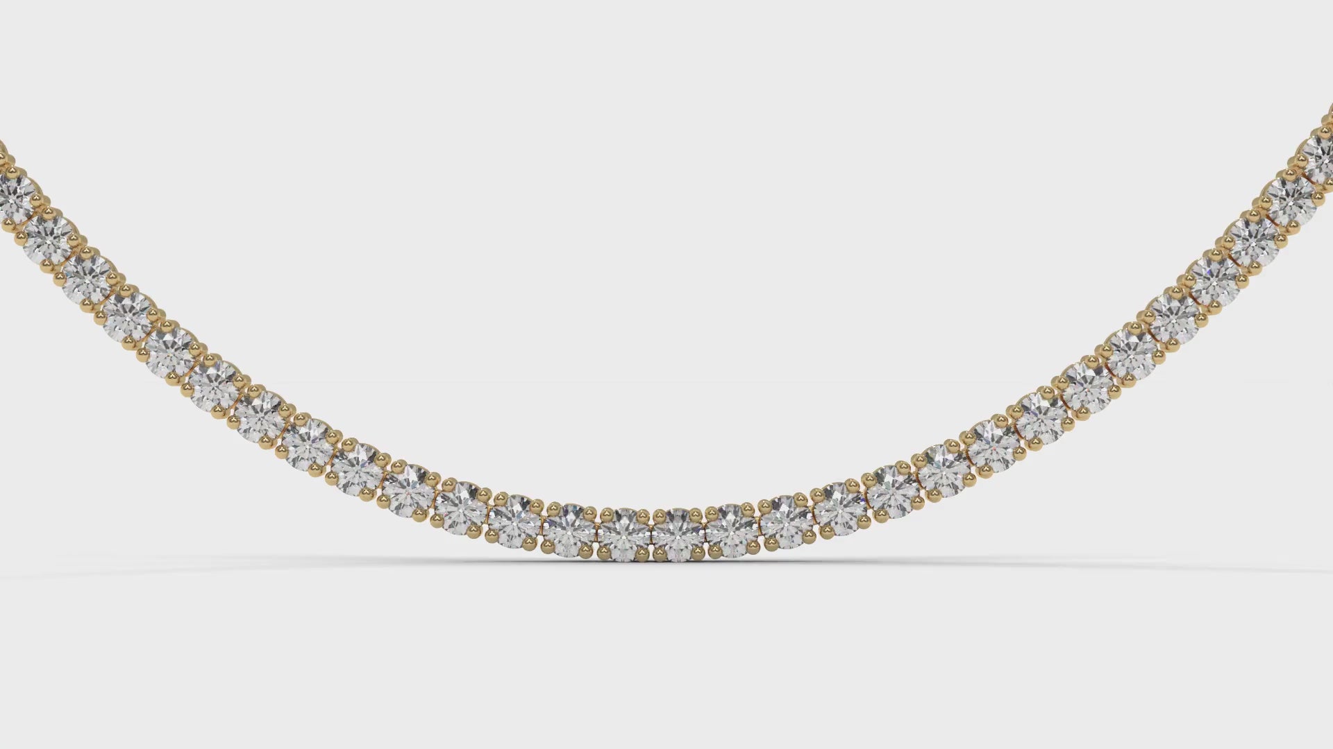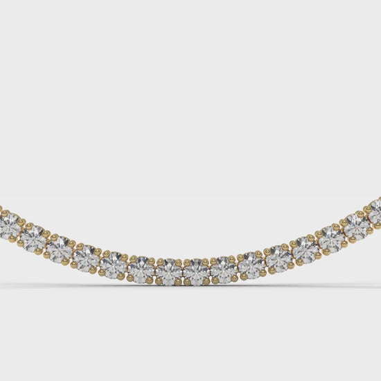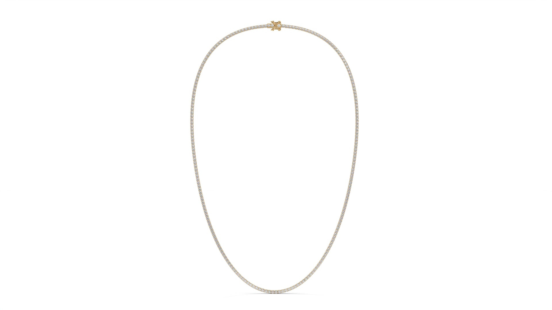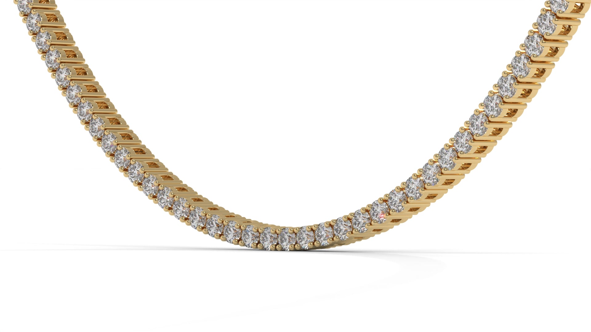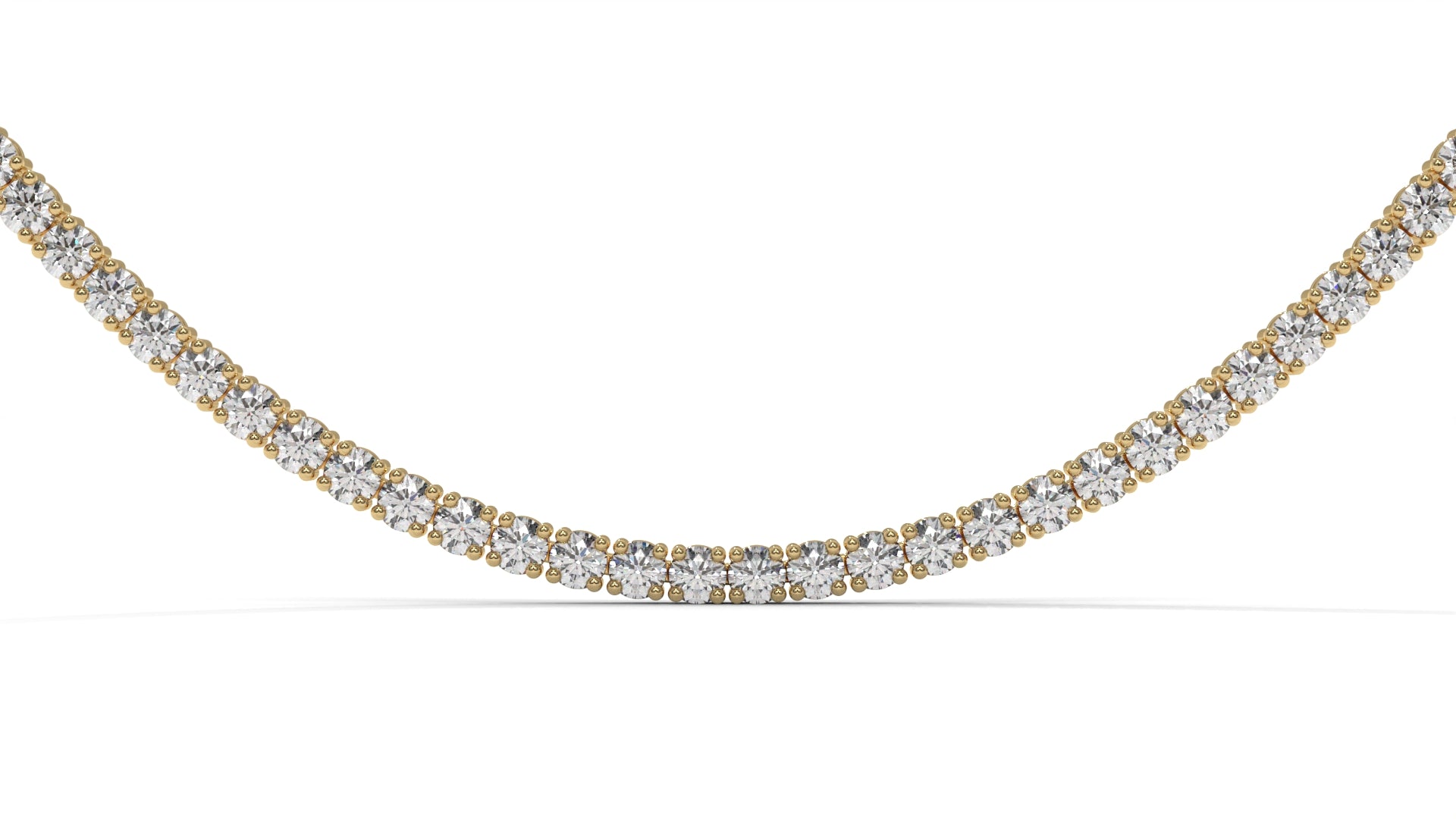Make a bold yet timeless statement with this 5 Carat Total Weight Diamond Tennis Necklace. Expertly crafted in 14K yellow gold, this necklace showcases a single row of brilliant round-cut diamonds that shimmer with every movement. A classic jewelry essential, perfect for weddings, red-carpet events, or adding everyday sophistication.