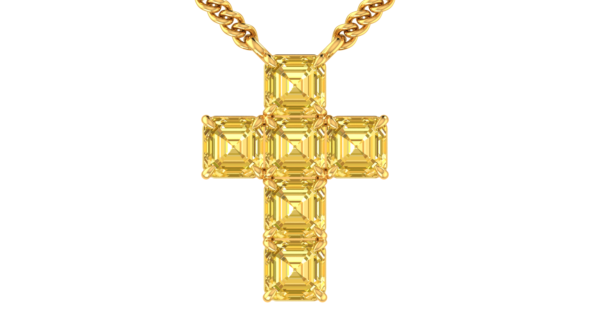 Make a bold statement with this exquisite 6 CTW Asscher Cut Yellow Diamond Cross Pendant, beautifully crafted in 14k yellow gold. Featuring meticulously cut Asscher diamonds arranged in a stunning cross design, this pendant embodies sophistication, faith, and luxury. Perfect for special occasions, milestones, or as a meaningful gift, this timeless piece is sure to captivate attention. Shop now to add this dazzling yellow diamond cross pendant to your collection and embrace unparalleled elegance.