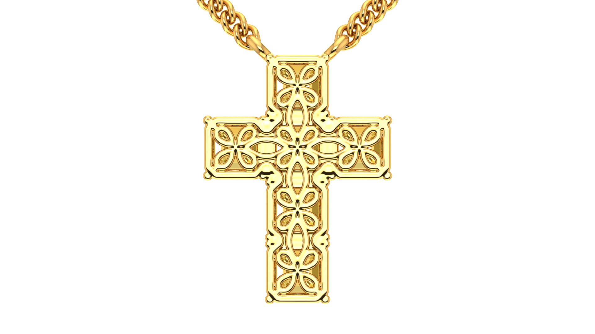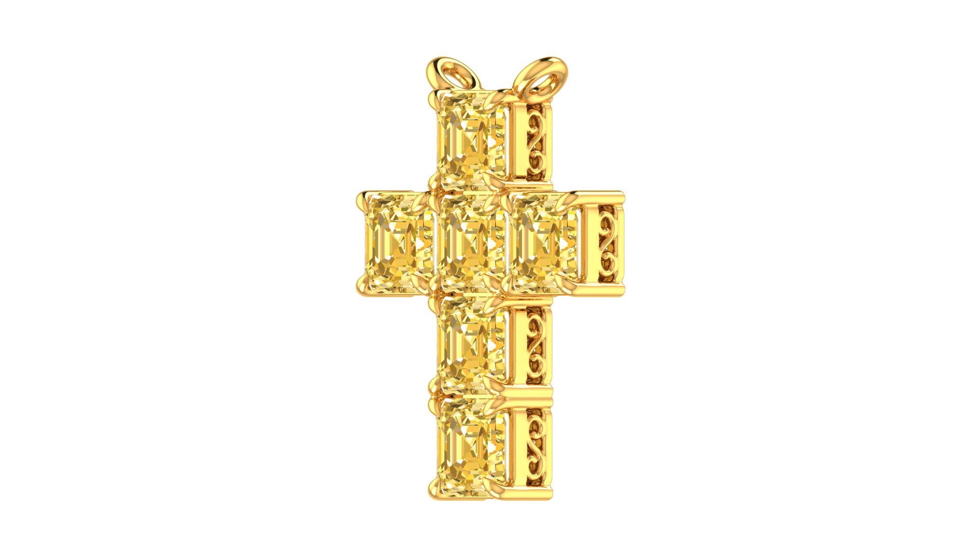 6.00 Ctw Asscher Cut Yellow Diamond Cross Pendant In 14K Yellow Gold