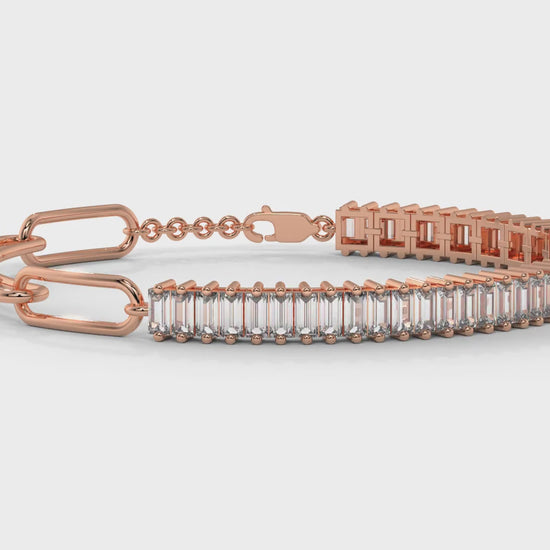 6.44 CTW Straight Baguette Diamond Bracelet in 14K Rose Gold – Modern Link Design