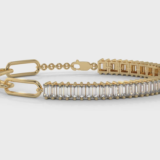 6.44 CTW Straight Baguette Diamond Bracelet in 14K Yellow Gold – Modern Link Design