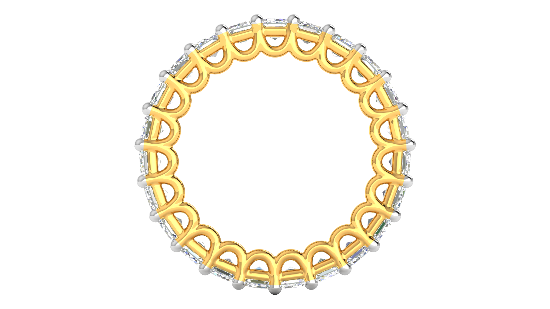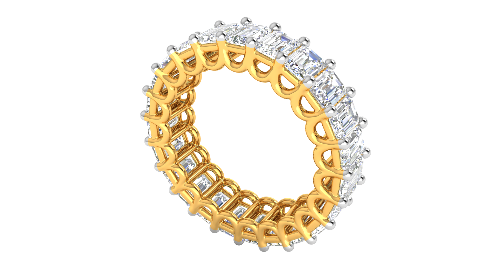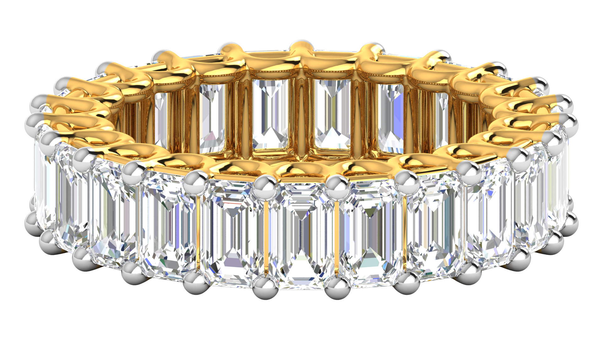 This luxurious eternity band features 6.90 carats of stunning emerald-cut diamonds, meticulously set in 14k yellow gold. Each diamond is elegantly prong-set to maximize brilliance and create a seamless, continuous... Show More
