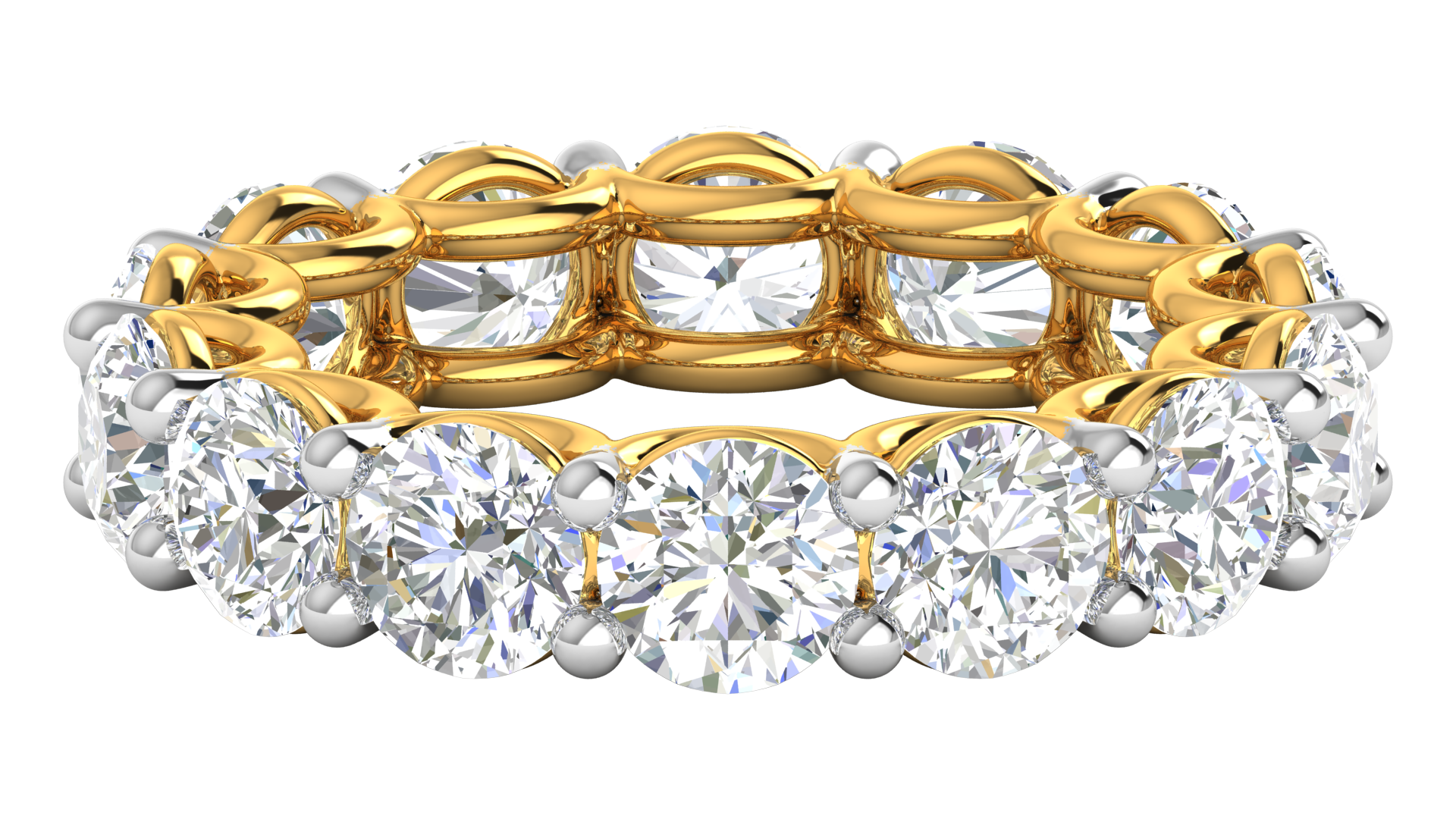 This breathtaking eternity band showcases an impressive 7 carats of dazzling round brilliant diamonds, meticulously set in 14k yellow gold. The continuous circle of diamonds, secured with a refined prong setting, symbolizes eternity and radiates unmatched brilliance and sparkle. A timeless and luxurious piece, perfect for celebrating milestones such as weddings, anniversaries, or as an extraordinary addition to any fine jewelry collection.