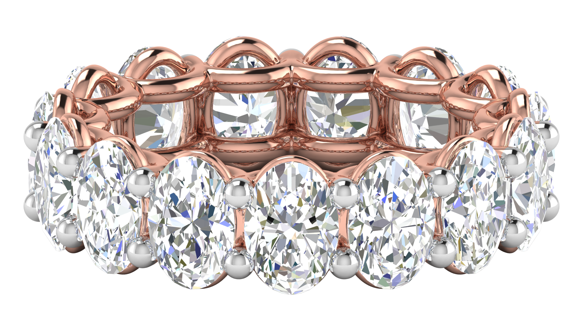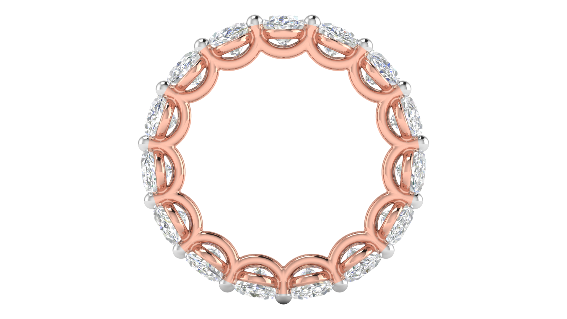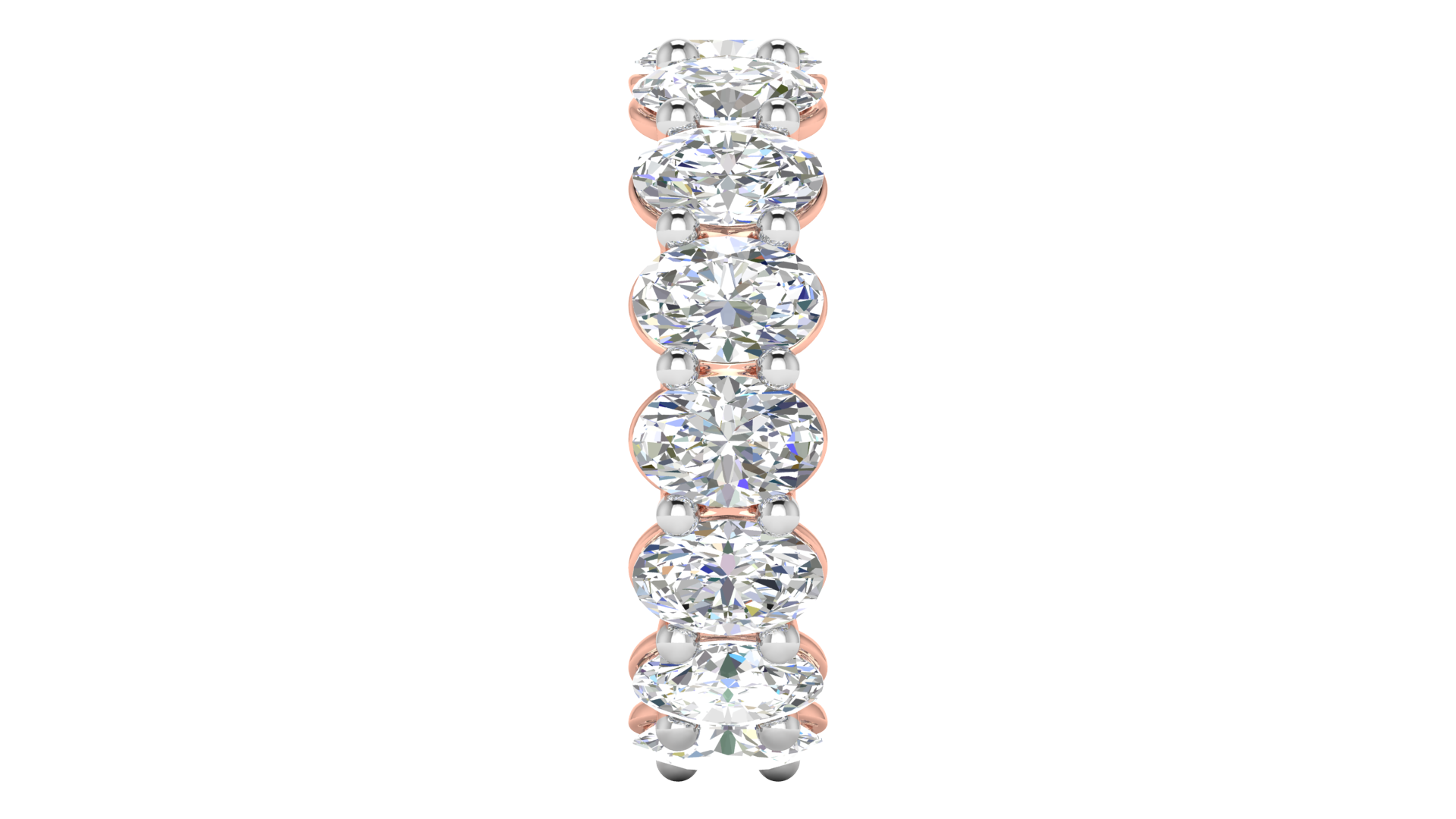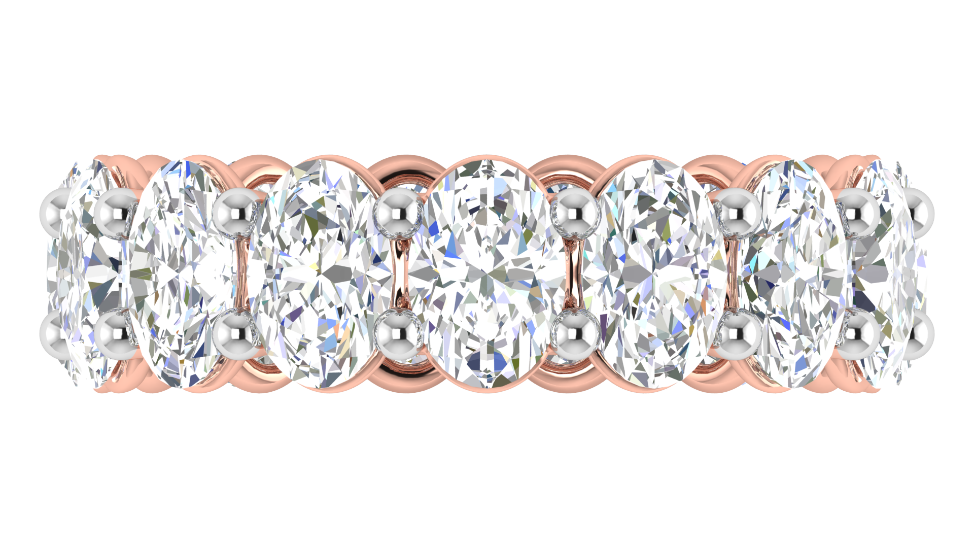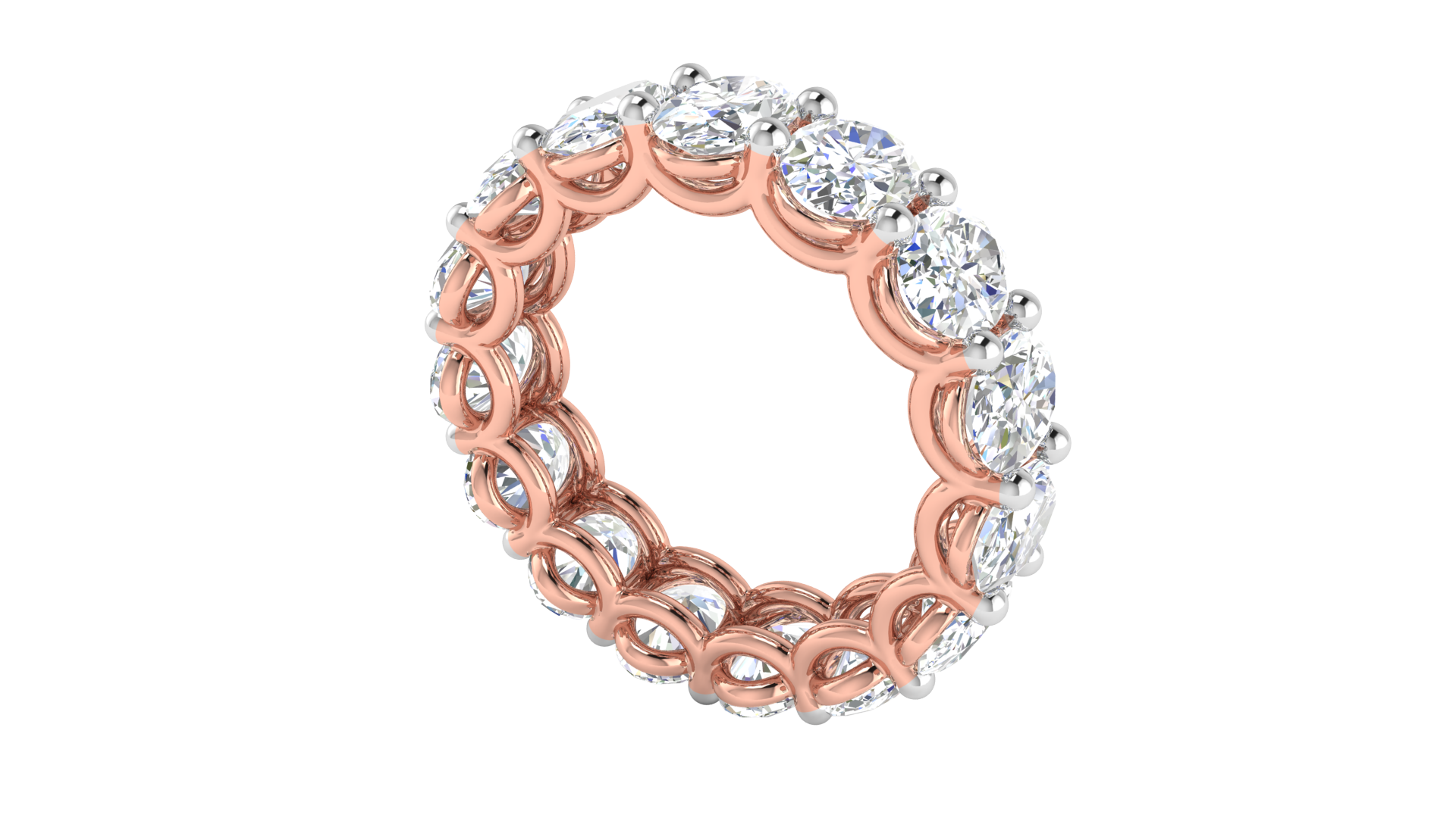 This exquisite eternity band features 7.50 carats of oval-cut diamonds, carefully set in a luxurious 14k rose gold band. The intricate prong setting creates a seamless circle of brilliance, enhancing the natural sparkle and elegance of each stone. The flowing design provides a perfect blend of modern sophistication and timeless beauty. Ideal for marking special occasions such as weddings, anniversaries, or as a statement of everlasting love, this ring is a true celebration of style and commitment.