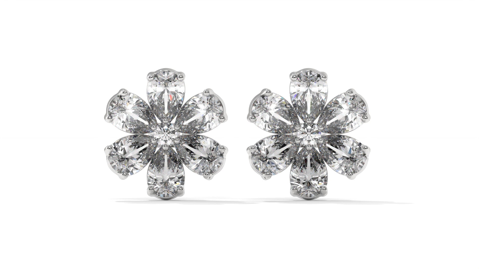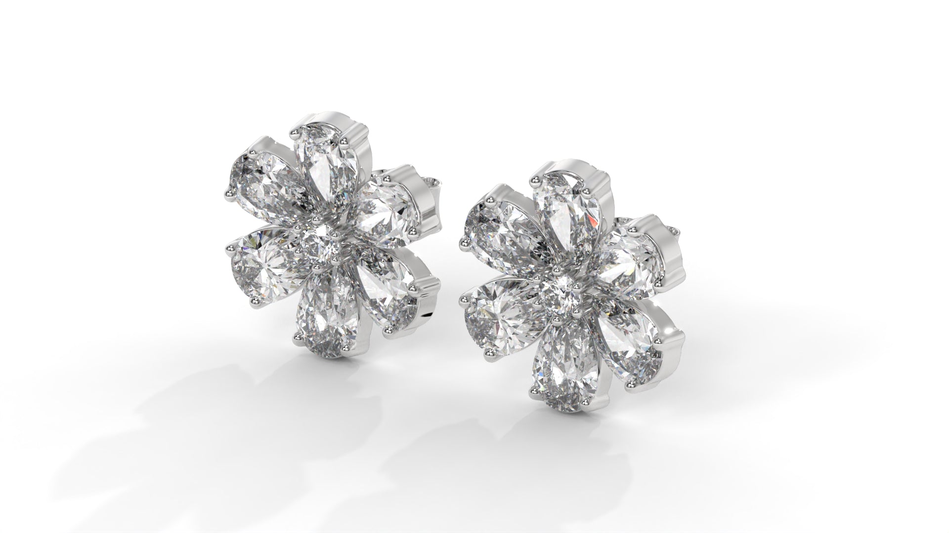 8.14 CTW Diamond Flower Stud Earrings in 14K White Gold - Pear-Shaped Cluster Design